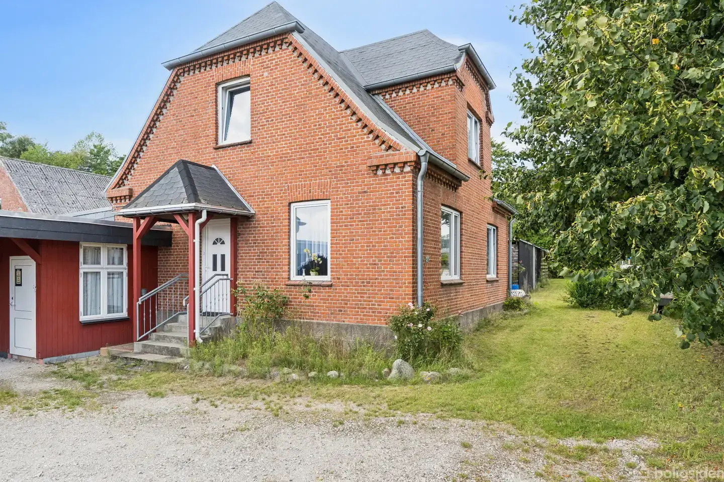 Hermed udbydes denne centralt beliggende ejendom på en stor grund med masser af både plads og muligheder. Ejendommen vil være perfekt til fx den selvstændige håndværker eller erhvervsdrivende som ønsker at kombinere privatbolig og firma. Eller måske til jer med den pladskrævende hobby. Hovedhuset som er på 182 m2 er løbende renoveret med bl.a. nyere tag, ekstra isolering, varmeinstallation og afkalkningsanlæg. Fra hovedhuset er der adgang direkte ud til værkstedet og lageret som desuden har se