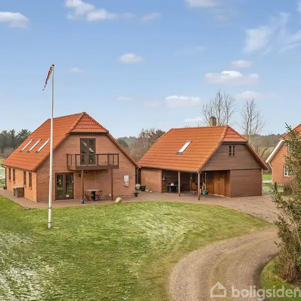 Åbent hus med tilmeldingskrav 4/2 - klik på billede - Velkommen til Hovej 17A Her præsenteres du for en indbydende villa, der kombinerer solidt byggeri med en hyggelig atmosfære. Boligen er fra 2004 og strækker sig over 194 m² og rummer masser af muligheder, hvilket gør den ideel for en pladskrævende familie som ønsker sig fri luft og natur. Boligen er opført i røde mursten og har et smukt rødt tag, der sikrer både holdbarhed, æstetik og for det til at fremstå harmonisk i de naturskønne omgivelser. Udover beboelsen forefindes en anneksbygning med mulighed for udlejning, eller hvis du har brug for at placere en af børnene eller svigermor lidt for sig selv. Boligen indeholder: Entre med en god trappe til 1.sal. Bryggers. Stort køkken/alrum med god spiseplads - perfekt til samvær og gæster. Opholdsstue. Soveværelse, samt et badeværelse. På 1. sal finder du et stort, fleksibelt rum, der kan indrettes til ekstra værelser, kreativt værksted eller hyggelig stue. 1.salen er indrettet med et stort rum med mulighed for at etablere ekstra soverum, toilet/bad eller hvis du har brug for mere krea- eller stueplads. Den tilhørende anneksafdeling indeholder en integreret carport, et redskabsrum samt et hobbyrum. 1.salen er registreret som beboelse og indeholder yderligere 2 soverum. I forlængelse heraf er der opført en skøn 18 kvm udestue der forlænger sommeren. Den imponerende grund på 9.300 m² er udlagt som naturgrund med græsarealer, en lille sø og masser af plads til udfoldelse. Her kan du nyde fugle- og dyrelivet, etablere køkkenhave, eller skabe rammer for mindre dyrehold - og med pladsen er der også mulighed for hestehold, hvis drømmen er at kombinere bolig med rideglæde. Boligen er udstyret med et effektivt jordvarmeanlæg, der sikrer både behagelig indendørs temperatur og en fornuftig varmeregning året rundt. Tag chancen for at opleve denne skønne villa, der kombinerer komfort og funktionalitet i et af Danmarks mest attraktive ferieområder.