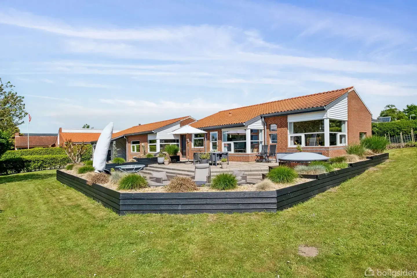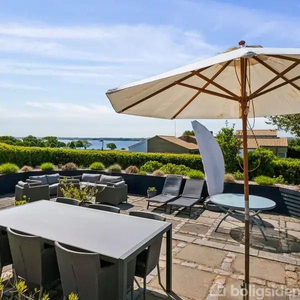 Hvor skal man næsten begynde – med beliggenheden eller ejendommen? Denne her arkitekttegnede villa har hele pakken. Den byder på spændende niveauforskydninger, masser af plads, en enestående (og varig) udsigt til fjorden og følgeligt en helt vidunderlig adresse med alt det bedste, som Stensballe kan tilbyde. Og det er ikke så lidt. Se nærmere på en villa fra 1986, som i dag har en “usynlig” tilbygning fra 2011, som er tegnet af samme arkitekt. Det giver jer 224 m2, og det fuldmurede hjem er ska