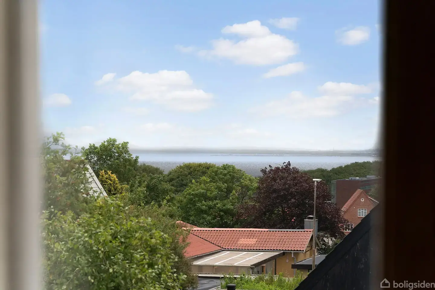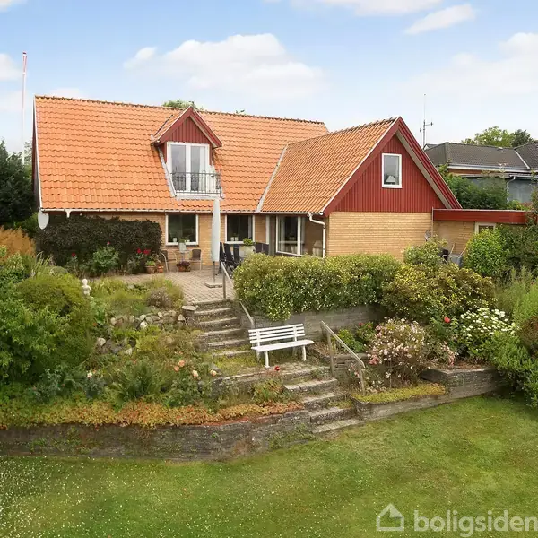 Åbent hus med tilmeldingskrav 22/2 - klik på billede - På Huginsvej 3 finder du en yderst præsentabel villa, som ligger fredeligt placeret på en lukket stikvej. Her får du en bolig med en særdeles smuk og frodig have, flot udsigt over landskabet – og ikke mindst en planløsning, der er både funktionel og fleksibel. Beliggenheden er ideel for børnefamilien, da der er kort afstand til Limfjordsskolen, Friskolen og flere daginstitutioner, samtidig med at kvarteret er roligt og trygt. Villaen fremstår flot med sin klassiske arkitektur, røde tegltag og gule mursten. Ved ankomsten mødes du af en nydeligt anlagt forhave, flisebelagt indkørsel til carport. Her er desuden et godt og delvist isoleret udhus , der giver rig mulighed for opbevaring, hobbyaktiviteter eller værksted. og en god delvis isoleret garage, der giver rig mulighed for parkering, opbevaring, hobbyaktiviteter eller værksted. Indenfor bydes du velkommen i en entré, som leder videre til boligens hjerte – en stor og lys vinkelstue med smukt parketgulv. Her strømmer lyset ind fra de store vinduespartier, og der er direkte udgang til en sydvendt terrasse, hvorfra du kan nyde den skønne udsigt over landskabet. Køkkenet ligger i forbindelse med stuen og er udført med varme mahognigulve og masser af skabsplads. I værelsesafdelingen i stueplan finder du to gode soveværelser med indbyggede skabe og trægulve samt et pænt badeværelse med bruseniche. Dertil kommer et rummeligt bryggers med plads til vaskefaciliteter og opbevaring, hvilket gør hverdagens praktiske gøremål nemme at håndtere. På førstesalen venter flere gode kvadratmeter. En stor og åben repos fungerer som et naturligt samlingspunkt og kan nemt indrettes som en ekstra stue, kontor eller multirum. Desuden rummer etagen en hyggelig stue med skråvægge og synlige hanebåndsbjælker – et rum, der også egner sig godt som ekstra værelse, hobbyrum eller gæsteafdeling. Herfra er der udgang til en altan, hvor du har udsigt over haven og området helt til fjorden – et smukt blikfang, der skaber ro og atmosfære. Her er også endnu et værelse, der tilgås via en skabsgang med god opbevaringsplads. Etagen rummer desuden et gæstetoilet. Haven er i sig selv en oplevelse. Den er anlagt i flere niveauer med frodig beplantning, blomstrende buske og hyggelige kroge, hvor solen kan nydes dagen lang. Alt i alt er Huginsvej 3 en bolig, der kombinerer klassisk stil med moderne funktionalitet, en naturskøn beliggenhed og plads til hele familien – både nu og i fremtiden.