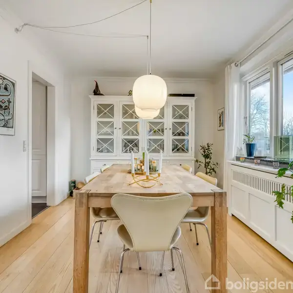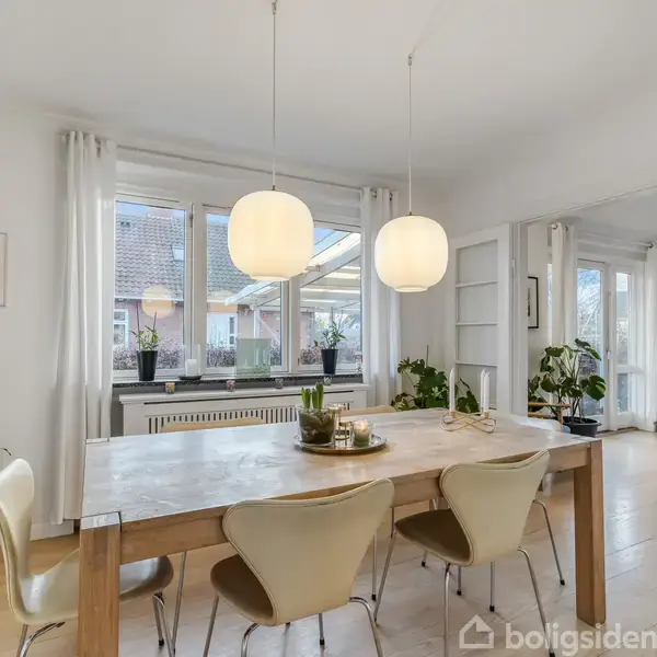 På en rolig vej ligger denne klassiske murermestervilla fra 1954, hvor lyset er en fast gæst i både stue og på førstesal. Her får du 116 m² bolig og ca. 60 m² anvendelig kælder på en grund på 878 m² samt en garage på 32 m². Et hjem med højt til loftet, atmosfære og mange muligheder.Man mærker straks det, sælgerne forelskede sig i: det dejlige lys, de luftige rum og en stemning af ro. Stuen modtager morgensolen, og på førstesalen ligger tre værelser, hvor udsigten og dagslyset skaber en særlig ro
