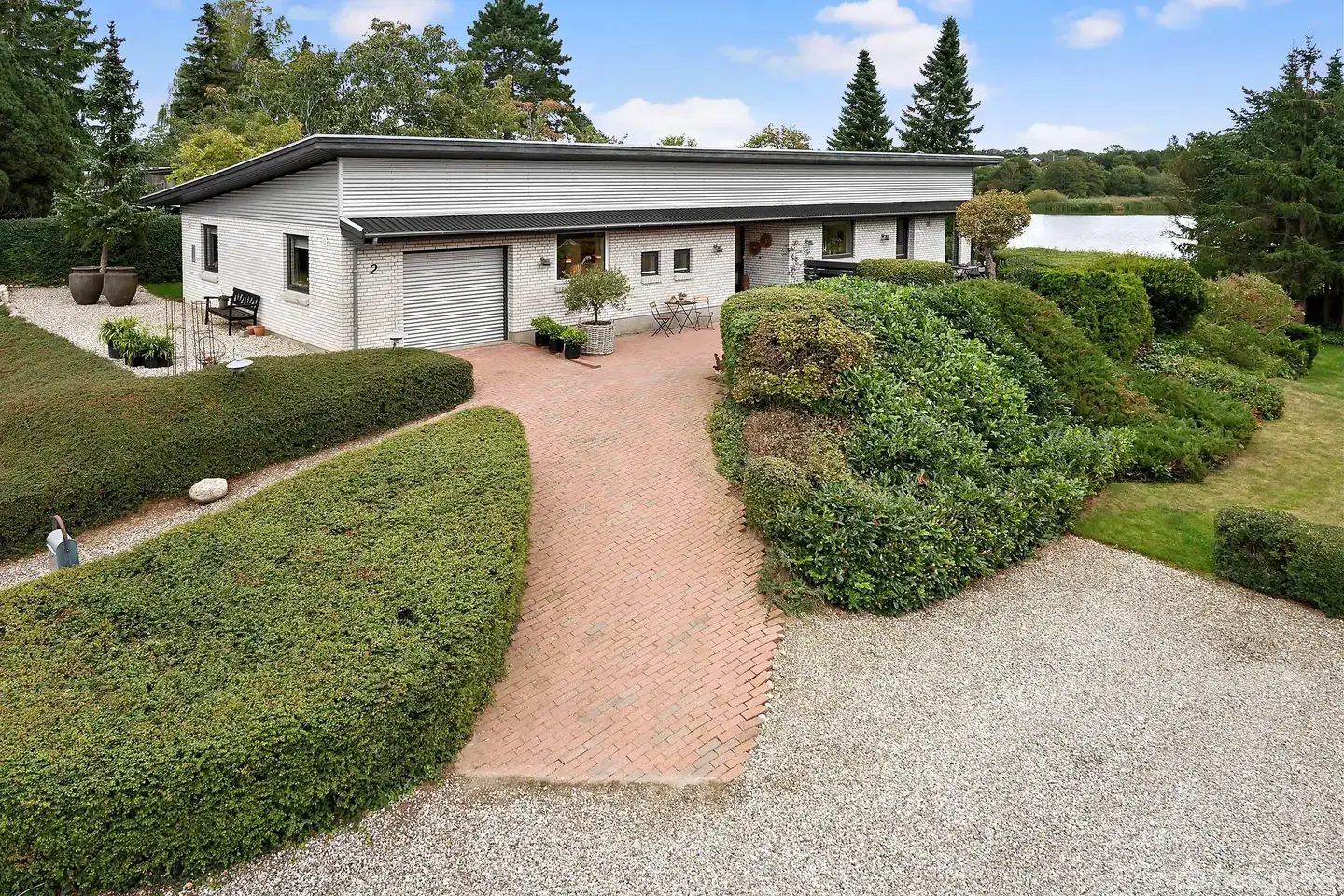 Åbent hus med tilmeldingskrav 1/2 - klik på billede - Lys, luft og livskvalitet med udsigt til den verdensberømte Hulemosesø Træd indenfor på Hulemosevej 2 - et hjem, der straks føles rart at være i. Her forenes funktionalitet, lys og varme i en velholdt bolig på 146 m² i ét plan, suppleret af en integreret garage på hele 32 m² med utallige anvendelsesmuligheder - værksted, aktivitetsrum, atelier eller måske ekstra beboelse. Allerede fra entréen fornemmer man husets lyse og indbydende atmosfære. Den leder direkte ind i det store, åbne køkken-alrum og stue. Her strømmer lyset ind gennem de brede vinduespartier, og udsigten til Hulemosesøen danner en smuk, rolig baggrund for hverdagen. Køkkenet er både moderne og yderst funktionelt med god bordplads, åben forbindelse til spiseområdet og en naturlig overgang til stuen - et samlingspunkt, hvor familie og venner mødes til madlavning, hygge og samvær. Fra stuen er der direkte udgang til den store terrasse, hvor en del er overdækket, så du kan nyde udsigten og udelivet året rundt - perfekt til sommermiddage, leg og afslapning. Boligen rummer tre gode værelser, alle med fin plads til både børn, gæster eller hjemmekontor. Den separate soveafdeling er placeret i husets vestlige del med adgang til stort og indbydende flisebadeværelse med bruseniche. Et ekstra badeværelse ligger centralt ved entréen - praktisk og gennemtænkt. I forbindelse med køkkenet ligger et rummeligt bryggers med vaskefaciliteter og egen indgang - ideelt til familiens hverdag. Fra enden af gangen er der ligeledes udgang til garagen, som nemt forenes med boligen uanset hvilke spændende muligheder man ser i den. Huset fremstår virkelig flot og velholdt overalt og opvarmes med splinterny fjernvarme fra september 2025, så du får både komfort og lavere energiforbrug. Beliggenheden er i top - 400 meter til skole og børnehave, trygge stisystemer og et aktivt lokalmiljø gør hverdagen let for børnefamilien. Samtidig får du naturen lige udenfor døren og Nyråds rolige stemning omkring Hulemosesø. Når du er færdig med at savle over denne skønne bolig og beliggenhed kan du bestille en fremvisning alle uges dage på 5598 5620.