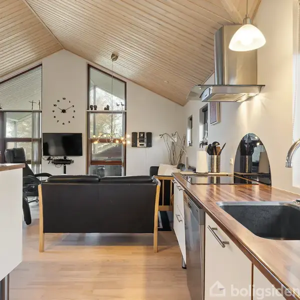 Moderne sommerhus nær vandet med god pladsSommerhuset er beliggende i det rolige og attraktive Ejsingholm sommerhusområde, kun ca. 400 meter fra vandet, hvor der er gode muligheder for både badeture og afslapning ved stranden. Området er kendt for sin fredelige stemning og nærhed til naturen, samtidig med at der kun er ca. 10 minutters kørsel til Vinderup by med gode indkøbsmuligheder og et bredt udvalg af fritidsaktiviteter.Huset er opført i 2009 og fremstår moderne og velholdt og huset er opfø