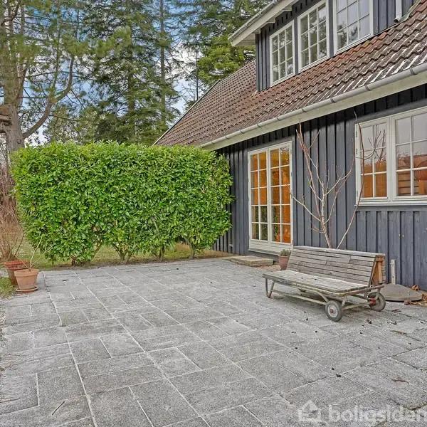 Velkommen til denne hyggelige villa med en charmerende blanding af skovmandshytte- og sommerhus stemning. EJENDOMMEN:Super velindrettet, mørkeblåt træhus som indvendigt byder på en lys, lækker stil og god plads til familien. Haven er orienteret mod syd og den skønne terrasse ligger klar til solbadning og grillhygge på lune dage, Til ejendommen hører et udhus til opbevaring af havemøbler o.l., og der er fin plads til cykelparkering eller lign. under husets lille overdækning i gavlen. Ejendommen e