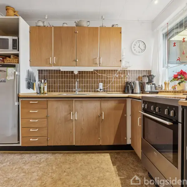 Velindrettet Koch-rækkehus i trygge og rolige omgivelserI udkanten af Hjallese får I trygge rammer tæt på hverdagens fornødenheder og skøn natur, når I bliver de næste ejere af dette velindrettede Koch-rækkehus. Inden døre venter en funktionel planløsning, og flere af rummene står i original stand og stil. Der venter i alt tre værelser, et badeværelse, et bryggers, et køkken og en stue. Udearealerne vil også få et smil frem på læberne med hyggelige kroge, kønne bede og ugenerede rammer.Køkkenet