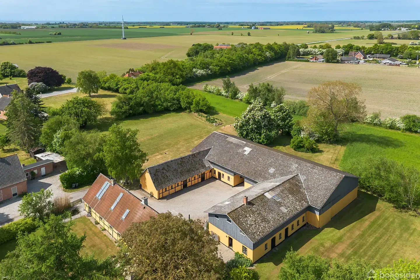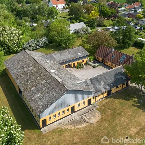 EJENDOMSTYPE:Hyggelig firelænget bindingsværksejendom, som fremstår utrolig flot og meget velholdt. Dele af ejendommen er oprindeligt fra 1877, hvor størstedelen af udbygningerne er fra 1940 og fremstår i murede facader. Der er Decra tag på beboelsen samt bølgeeternit på udbygningerne. Her er et samlet boligareal på 203 kvm samt 615 kvm udbygninger, som alle fremstår i rigtig god stand. BELIGGENHED:Ejendommen er beliggende i Øster Ulslev, som sidste ejendom på blindvej. Her er et samlet grundare