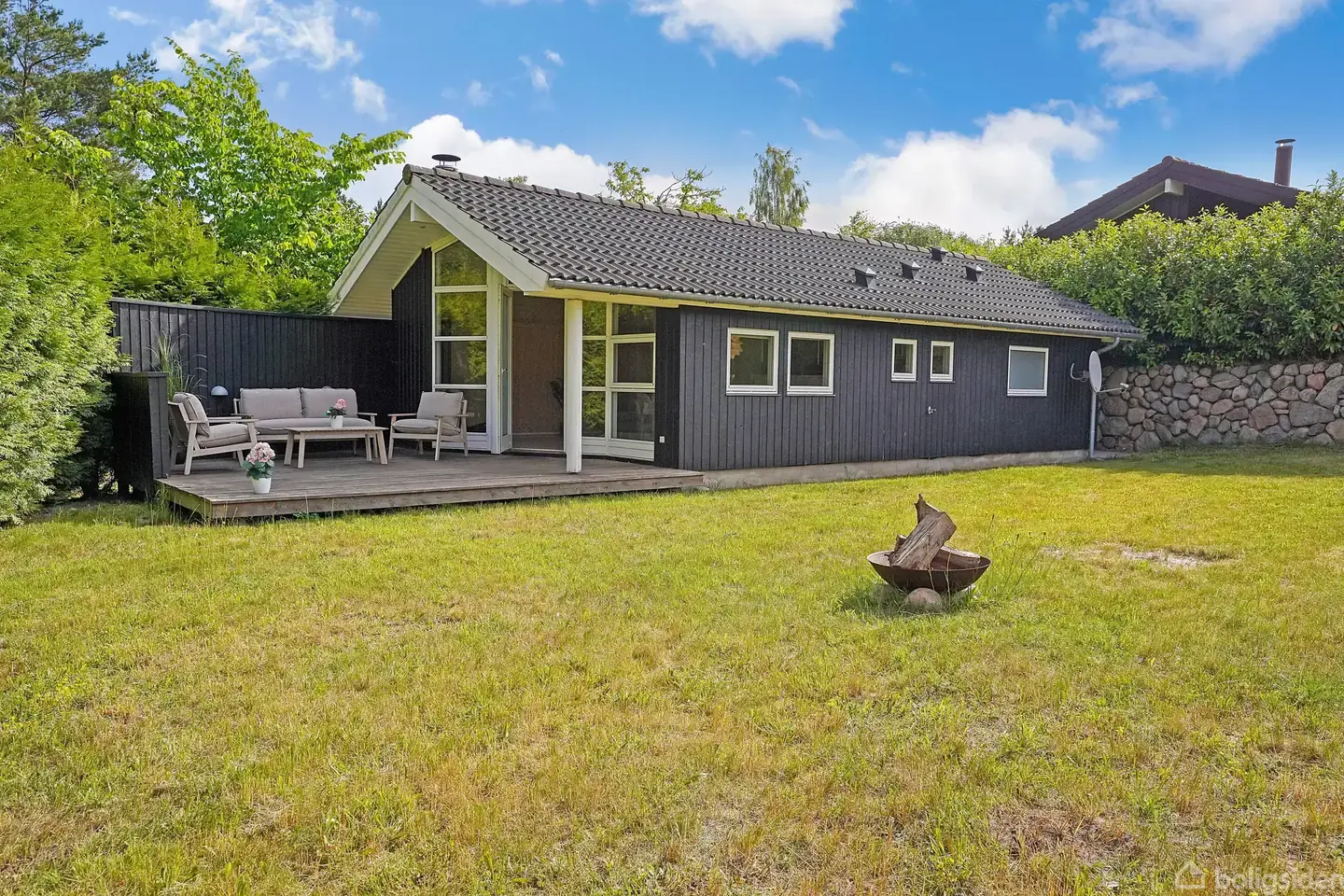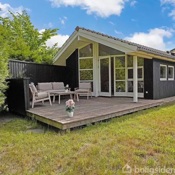 Super dejligt helårsanvendeligt sommerhus på stor - 1.981 m2 - naturgrund ud til marker med gravhøjeDrømmer du om ro, natur og autentisk ferieoplevelse i egne rammer? Dette hyggelige og velholdte sommerhus fra 2007 byder på 56 m2 velfordelte kvadratmeter og ligger på en stor, privat grund – perfekt til dem der ønsker masser af plads omkring sig og naturen helt tæt på. Huset er indrettet med en lys og åben stue med loft til kip og stort vinduesparti mod den store træterrasse, og det giver et skø