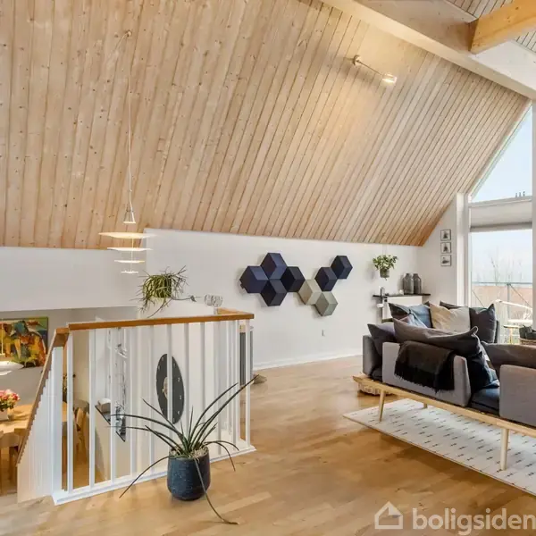 Åbent hus med tilmeldingskrav 3/2 - klik på billede - På en af Struers mest attraktive placeringer – tæt på både byliv, natur og vand – ligger denne unikke villa i forskudt plan, hvor arkitektur, materialevalg og udsigt går op i en højere enhed. Boligen rummer bl.a. stue og et køkkenalrum, værelser og kontor – og i den fuldt udnyttede kælder finder du bryggers, vaskerum, viktualierum samt et lille værksted, så både familieliv, hjemmearbejde og hverdagslogistikken får perfekte rammer. Her får du et hjem, der føles både moderne og varmt, og hvor rummene er skabt til at leve i – med lysindfald, loftshøjder og kig til Limfjorden fra flere vinkler. Boligen fremstår gennemført og indflytningsklar med en stilren, rolig base: vandskurede/pudsede vægge, smukke gulve og gennemtænkte akustikløsninger, der giver en behagelig lyd i hverdagen. Og så er der udsigten – den er ganske enkelt et kapitel for sig: fra Venø til Handbjerg, og særligt fra den store stue med loft til kip, hvor fjorden bliver en naturlig del af indretningen. Boligens forskudte plan giver et spændende flow og en naturlig opdeling mellem ophold og værelser. Stuen er et absolut højdepunkt: luftig, lys og med en udsigt, der gør indtryk året rundt. Her er både plads til sofaafdeling, samvær og de stille øjeblikke, hvor man bare kigger ud. Køkkenet er stilrent og funktionelt – et Invita-køkken, der ligger naturligt i forbindelse med opholdszonerne, så madlavning og gæster går hånd i hånd. Derudover får du et charmerende gæstetoilet samt et totalrenoveret badeværelse udført med høj materialekvalitet: Svane-element i røget eg, QTOO-armaturer og Cassøe håndklædetørrere i messing – alt sammen i en stil, der matcher husets eksklusive udtryk. Kælderen er fuldt udnyttet og giver en masse brugbar hverdagskomfort med bl.a. bryggers med komplet HTH-inventar, vaskerum og gode opbevaringsmuligheder. Hertil kommer et naturligt kølet viktualierum (“lega under klinker” og udluftning), som er en virkelig lækker detalje for vin, grønt og kolonialvarer. Udenfor venter en lukket og ugeneret have, som er gjort yderst vedligeholdelsesfri – perfekt til dig, der vil nyde udelivet fremfor at bruge weekenderne på havearbejde. Den nedgravede Berg-trampolin medfølger, og der er plads til både leg, afslapning og hyggelige sommeraftener. Ejendommen byder desuden på carport, hvor der er gjort klar til el-ladestander, samt både lukket skur og cykelskur, så opbevaring og daglig praktik er tænkt ind fra start. Her bor du i et område med godt naboskab og mulighed for medlemskab af Østre Strands Bådlaug, hvor du kan få adgang til bl.a. padleboards og havkajakker – en sjælden og meget attraktiv bonus for dem, der elsker vandet og livet tæt på fjorden. Beliggenheden, udsigten og boligen er noget helt særligt – og den rette fornemmelse får man først, når man står her selv. Tilmeld dig en fremvisning eller ring til os allerede i dag på 97851900, så finder vi en tid, der passer dig.