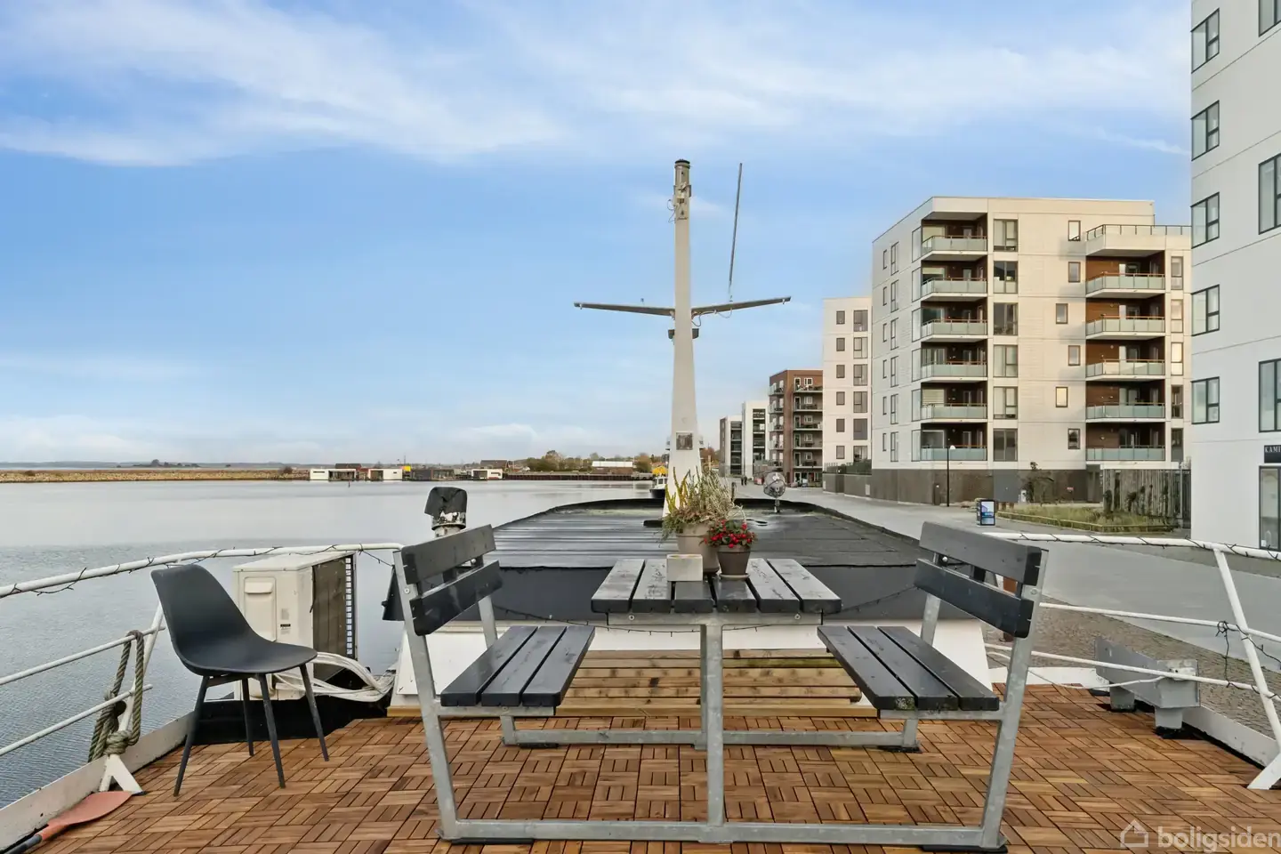 Herlig husbåd i Holbæk Havn Flydende på vandet ved Holbæk Havn ligger ELLENOR – en tidligere norsk slæbebåd fra 1919, som i dag udgør et unikt og indbydende hjem. Alt det indvendige er opført inden for de seneste fem år og stod færdigt i 2023. Resultatet er en funktionel og harmonisk fritidsbolig med respekt for bådens historie. Du kan se frem til at indrette 100 kvadratmeter, som fordeler sig over to plan, og øverst venter en solrig tagterrasse med en flot panoramaudsigt over vandet. Du træder