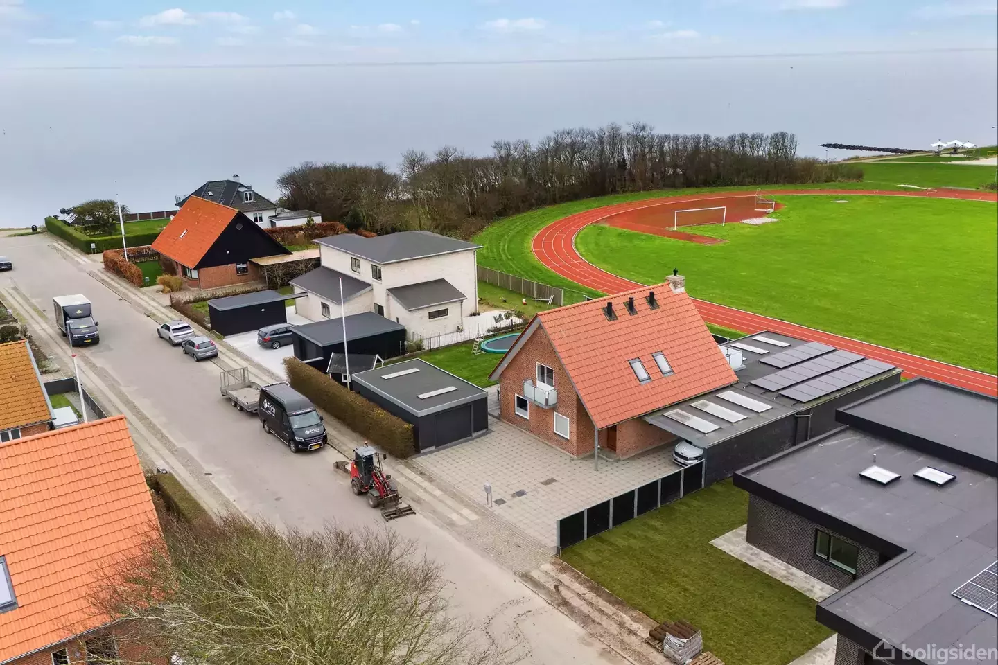 Åbent hus med tilmeldingskrav 2/2 - klik på billede - Ejendommen er oprindeligt opført i 1954, men langt det meste er moderniseret og opbygget i 2015. Ejendommen har således gennemgået den helt store renovering og her er tilført garage, carport og et stort værksted, så du i dag vil opleve en særdeles personlig bolig, hvor det ikke er forkert, at bruge udtrykket "gennemtænkt til mindste detalje". Sælger har aldrig set begrænsninger i renoveringsprocessen. Kompromisløshed, kvalitetsbevidsthed og prikken over i'et er ordene der først falder os ind. Spændende kvalitetsvilla på særdeles attraktiv fjordvej med flot fjordudsigt fra 1. sal og tagterrassen med bl.a. garage, carport, stort værksted/udhus og en gennemtænkt indretning. Boligen rummer 202 m² og fordeler sig således: Indgang i lys entré med vaskefaciliteter og adgang til teknikrum. Herfra træder du ind i et imponerende køkken/alrum med direkte forbindelse til stuen. Her er sildebensparket, smukt Svane køkkeninventar og en hjørnepejs. Her er masser af lys og udgang til en helt ugenert sydvendt terrasse. Fra stuen får du også en delig udsigt til fjorden. I alrummet er her god plads til langbordet og de akustikvenlige lofter gør det til en fornøjelse at samle hele familien netop her. Her er virkeligt tale om et rum, der er svært at forlade. Det skulle da lige være for at trække op på en af byens bedste tagterrasser. Her er et imponerende view over fjorden og atletikstadionet. Et fantastisk sted at koble af og samle ny energi. 1. salen er i øvrigt indrettet optimalt til børneafdeling med to store værelser, badeværelse samt alrum eller kontor alt efter behov. Inden du slippes løs i huset, vil vi lige fremhæve de nære omgivelser, der ikke fås meget bedre. Hvis familien holder af en aktiv livsstil ligger der en fornem buffet af muligheder i absolut gåafstand fra matriklen. Vi fremhæver: fjordstien til løb, gåtur eller ren meditation, badebro sommer (og vinter) tennis- og paddelbaner, udendørs pulspark, svømmehal og nå ja alle de forrygende muligheder for vandsport på fjorden. Haven består primært af plæne, så der er tid til alt det sjove. Bonus: Ejendommen er i særklasse energivenlig med luft/vand varmepumpe, solceller med batteri samt solpaneler til varmeanlægget og ventilation med varmegenvinding. Vi vil glæde os til at vise dig Hvashøj 14!