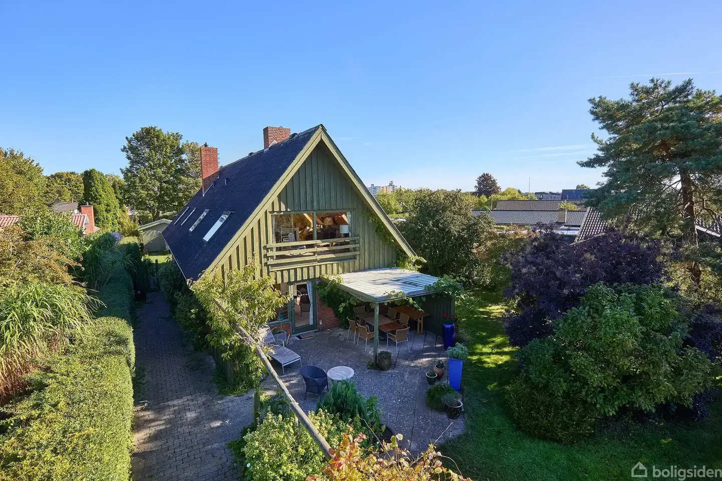 Velkommen til Hvedevej 7 – en rummelig ejendom, der giver plads til hele familien. Her får I 265 m² bolig fordelt på to etager, opført i røde mursten i 1968 og med en harmonisk overbygning i træ fra 1979. Boligen byder på hele 6 værelser, 2 stuer, 2 badeværelser og 3 toiletter, hvilket gør huset mulitanvendeligt f.eks. til den store familie eller jer, der ønsker plads til både hjemmekontorer, gæsteværelser og hobbyrum. I stueplan finder I en lys og indbydende pejsestue med højt til loftet. Der er store sydvendte vinduespartier og direkte udgang til en delvist overdækket terrasse – perfekt til hyggelige sommeraftener. Herudover rummer etagen et rummeligt spisekøkken, tre værelser, badeværelse med kar samt et praktisk bryggers med egen indgang. På førstesalen åbner hjemmet sig endnu engang med en stor opholdsstue med loft til kip, tre lyse værelser samt et badeværelse med brus og sauna – et oplagt familierum, hvor alle kan trække sig tilbage. Den 1.088 m² store grund er velanlagt med både forhave, græsplæner, frugttræer og buske. På nordsiden af huset findes et stort udhus med mulighed for værksted eller ekstra opbevaring. Ejendommen står med sit originale køkken og badefaciliteter, men fremstår solid og velholdt – og giver dermed nye ejere en oplagt mulighed for at sætte deres eget præg. Kort fortalt: 265 m² bolig med masser af plads6 værelser og 2 store stuerSydvendt pejsestue og hyggelig terrasseStor grund med frugttræer og udhusSauna og karbadVelholdt men med moderniseringspotentiale