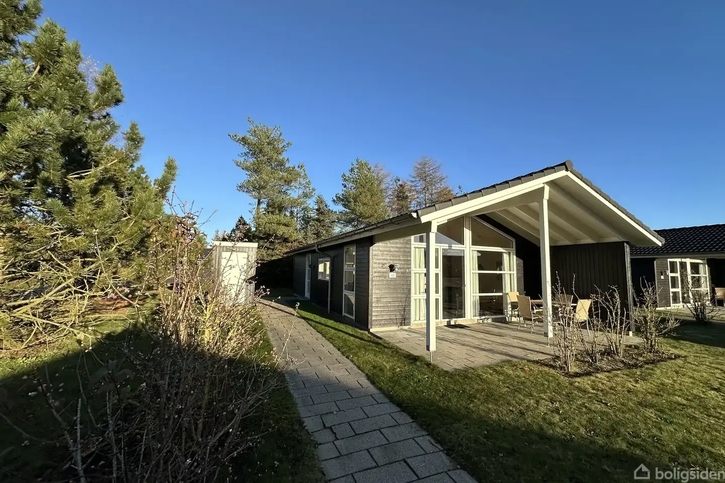 Dejligt fritidshus af typen Classic plus 4, beliggende ved Lalandia i Billund, tæt på af Danmarks største turistattraktioner Legoland. Huset er opført i træ og med betontagsten. Boligarealet er 72 m2 og indrettet med køkken i åben forbindelse med stuen, hvorfra der er udgang til overdækket terrasse, og i grønne omgivelser med plads til leg og spil Badeværelse med bruseniche. Soveværelse med dobbeltseng + en barneseng, samt et værelse med to enkeltsenge. Gulvvarme overalt, i feriehuse af denn