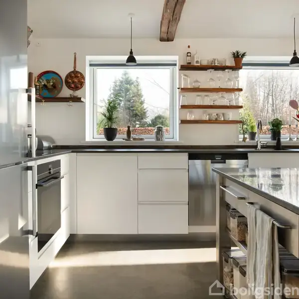 Om boligenHyldevej 1 er et hjem, hvor intet er overladt til tilfældighederne. Boligen er på 120 m² og opført i ét plan med samme niveau hele vejen igennem, hvilket skaber en naturlig sammenhæng mellem hus, terrasse og have. Indretningen er enkel og funktionel med to soveværelser, en hems med ekstra soveplads og et stilrent Kvik-køkken som boligens samlingspunkt. Betongulvene giver et roligt, arkitektonisk udtryk og er samtidig både rengørings- og vedligeholdelsesfri, mens de synlige hanebånd og bjælker i op til 100 år gammelt træ tilfører varme og karakter. Ejendommen suppleres af en garage med tilknyttet anneks på i alt 65 m². Annekset byder allerede på ekstra soveplads, badeværelse og et lille køkken, mens garagen giver mulighed for fleksibel anvendelse – fra ekstra værelser til arbejdsrum eller atelier. Om områdetBeliggenheden i Hornbæk er både rolig og bekvem. Stranden nås på cirka 800 meter, og dagligdagens indkøb klares nemt med blot 400 meter til den nærmeste indkøbsmulighed. Området er grønt og etableret, men samtidig tæt på byens liv, caféer og den særlige stemning, Hornbæk er kendt for. Her får man det bedste fra begge verdener – natur, kyst og by – samlet i en adresse, der fungerer året rundt. Om historienDet helt særlige ved Hyldevej 1 er historien bag boligen. Huset er opført af sælger selv, som har haft egen entreprenørvirksomhed og personligt har truffet alle valg i forbindelse med opførelsen. Det ses i de gennemtænkte løsninger og det usædvanligt høje vedligeholdelsesniveau. Materialerne er valgt med fokus på holdbarhed og funktion: betongulve, zinktagrender, paptag, betonterrasser og en vedligeholdelsesfri eternitfacade. Det er et hjem, der er bygget af én, der selv skulle bo i det – og det kan både ses og mærkes.