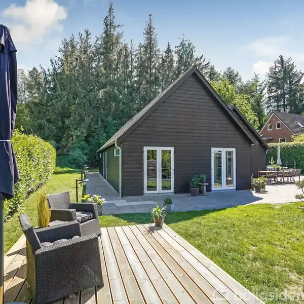 Moderne og rummelig villa med fantastisk udemiljø og med skoven i baghaven