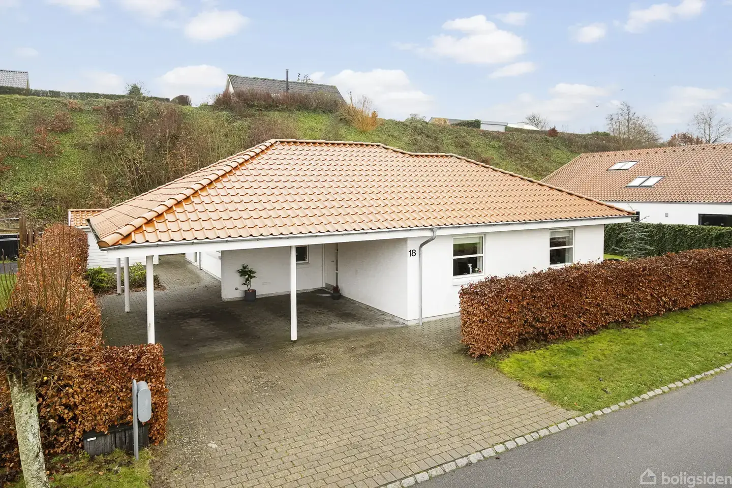 Hylkevænget 18 er roligt beliggende i et lukket og attraktivt villakvarter, hvor trygge rammer og gode fællesarealer danner grundlag for et velfungerende naboskab. Fra boligen er der nem adgang til de naturskønne områder i Hylkedal med fine stisystemer, ligesom boldbaner og fritidsfaciliteter ved Seest Boldklub ligger i kort afstand. Derudover er der bekvem nærhed til flere skoler i området samt Munkensdam Gymnasium, hvilket gør beliggenheden særligt velegnet til børnefamilien.Boligen fremstår v