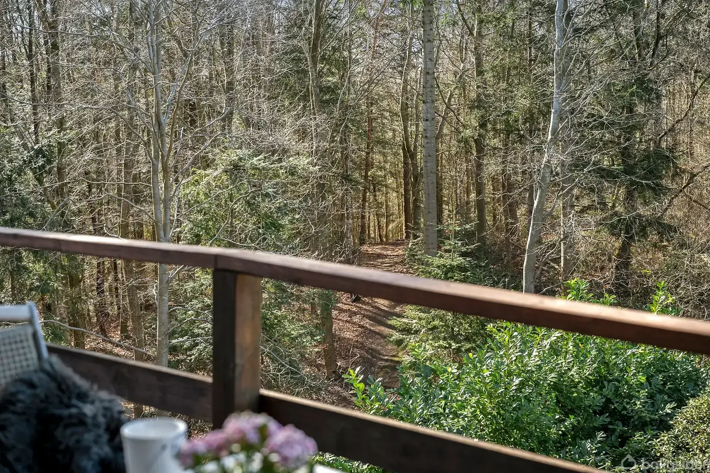 Velholdt villa med skøn natur som nabo — direkte mod skovstykke og med kig til Nørresø