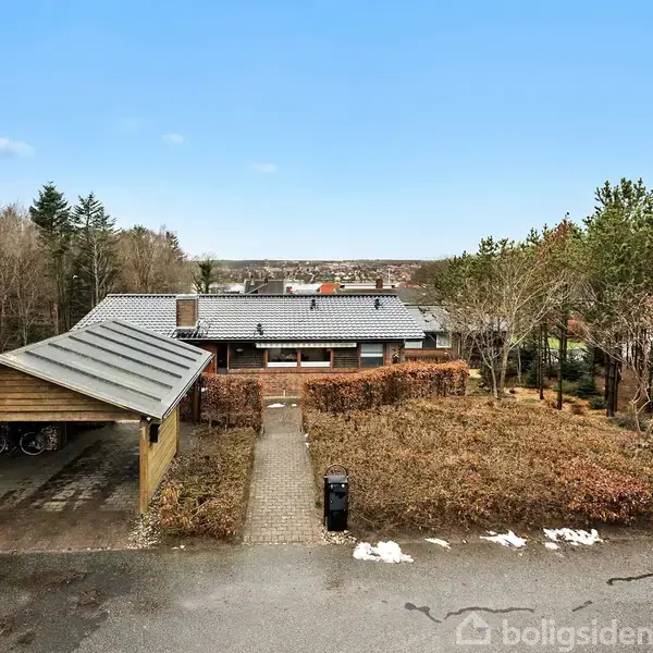 På Hyrdebakken i Viborg møder du en villa, der forener rolig naturnær beliggenhed med en gennemtænkt og funktionel indretning. Ejendommen ligger direkte op til et smukt skovstykke, og fra huset får du desuden kig mod Nørresø og Viborg by — en daglig påmindelse om de naturskønne omgivelser. Huset fremstår pænt og velholdt både ude og inde. Allerede ved ankomsten fornemmer man, at ejendommen er passet godt på, og indenfor fortsætter indtrykket med lyse, indbydende rum og en behagelig atmosfære. Planløsningen er rigtig god og fungerer til både hverdag og hyggelige stunder med familie og venner. Opholdsstuen ligger i naturlig forlængelse af køkkenet, så der er plads til samvær, og de store vinduespartier trækker grønne kig fra omgivelserne ind i rummet. Herfra er der også adgang til haven, hvor skoven danner en smuk og privat baggrund. Et særligt plus ved boligen er den dejlige underetage. Her finder du blandt andet eget bad/toilet og en selvstændig indgang, hvilket gør området ideelt som teenageafdeling, gæsteafdeling — eller måske til hjemmekontor eller hobby, alt efter behov. Det giver en fleksibilitet, som er sjælden at finde. Soveværelserne er velplacerede med fine opbevaringsmuligheder, og badeværelserne fremstår pæne og funktionelle. Haven er nem at passe og indrettet, så du kan nyde naturen i fred og ro — uden at være langt fra byens faciliteter, skoler, indkøb og Viborgs hyggelige centrum. Kort sagt: En indbydende villa i pæn stand med en attraktiv planløsning, en ekstra anvendelig underetage og en beliggenhed, hvor naturen er lige udenfor døren — perfekt til familien, der ønsker både trygge rammer og noget helt særligt i hverdagen.