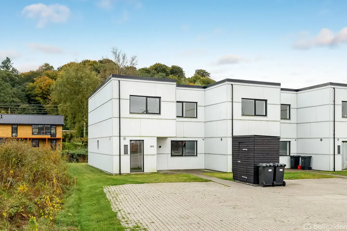 På Ibæk Strandvej 28C, med skoven nærmest beliggende i baghaven, finder I det moderne rækkehus i to plan, hvor det eneste I skal tænke på er at bære flyttekasserne inden døre og begynde at indrette jeres nye base omkring hverdagen. Fra adressen er der kort afstand til alle hverdagens bekvemmeligheder, hvad enten det drejer sig om midtbyens mange spændende tilbud, skoler, pasningsmuligheder eller skoven og Vejle Å, munder ud i Vejle Fjord, og kan nås til fods på få minutter. Rækkehuset, der er