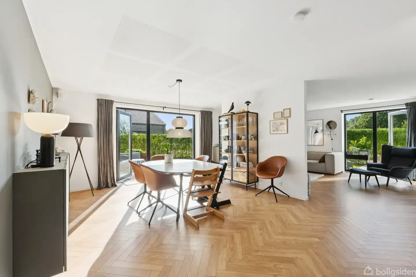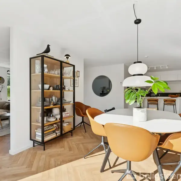 Det veldisponerede dobbelthus blev opført i 2020 af Levehuse og emmer af hverdags luksus. Derudover så ligger det rigtig godt, næsten for enden af en blind, ubefærdet vej tæt på naturen.Det nyere kvarter består af moderne huse i samme stil, men i lige netop dét, I snart kan overtage, er der kræset lidt mere for de lækre, kvalitetsbevidste materialevalg. De 130 m2 er noget så velindrettede med en adskilt forældre- og børneafdeling og et åbent leverum i midten. Forældreværelset har eget bad, og de