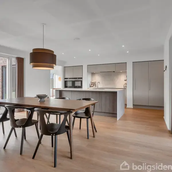 Velkommen til Ilderen 27 – en imponerende, arkitekttegnet etplansvilla på 200 m², hvor funktionalitet, design og hverdagsluksus går op i en højere enhed. Her får I et hjem, hvor lys, rum og materialer er gennemtænkt ned til mindste detalje, og hvor der er skabt en helt særlig atmosfære både inde og ude. Eftertragtet beliggenhed i Støvring Ådale Ilderen 27 ligger i et af Støvrings mest populære kvarterer – omgivet af natur, ro og trygge rammer. Her bor familien på lukkede villaveje med kort afstand til skole, indkøb, idrætsfaciliteter og offentlig transport. Støvrings grønne ådale strækker sig lige uden for døren, og turen til Aalborg tager kun 20 minutter. Opført af Hybel – arkitektur med kvalitet og omtanke Villaen er opført af Hybel og fremstår med et arkitektonisk udtryk, der kombinerer rene linjer, funktionelle løsninger og et særligt fokus på lys. Den overdækkede indgang og den integrerede carport giver en elegant ankomst, og allerede i entréen mærkes den høje standard med god skabsplads og et flot visuelt flow mod boligens hjerte. Køkken-alrum med fantastisk lys og adgang til atriumgård Husets køkken/alrum er et absolut højdepunkt: et stort og lyst opholdsrum med smukke vinduespartier, kig til atriumgården og udgang til den syd-/vestvendte terrasse. Her skabes en naturlig forbindelse mellem inde- og udeliv, og rummet indbyder både til hverdagsmad, gæster og fælles stunder. Køkkenet er udført i kvalitetsmaterialer med en stilfuld kaffebar, god arbejdsplads og en indretning, der giver både ro og funktionalitet. Bryggers og praktisk afdeling med adgang til tørrerum Ved entréen finder I et praktisk bryggers med adgang til teknik- og tørrerum samt direkte udgang – ideelt når vasketøjet skal ud i sommerhalvåret. I samme afdeling ligger et stilrent badeværelse med bruseniche. Tre værelser og hyggelig alkove En lys gang fører til tre velindrettede værelser, der kan benyttes til børn, kontor eller gæster. Her finder I også en hyggelig alkove med udsigt til atriumgården – et oplagt sted til afslapning med en bog, et glas vin eller morgenkaffe i fred og ro. Flere stuer og privat forældreafdeling Villaen byder på flere stuer, der giver fleksible indretningsmuligheder og adgang til forskellige udeområder. Forældreafdelingen er en sand oase med et roligt soveværelse og eget badeværelse med dobbelt bruseniche og eksklusive detaljer. Her får I privatliv, komfort og daglig velvære på højt niveau. Et hjem, der skal opleves Ilderen 27 er mere end blot en villa – det er et gennemført hjem, hvor arkitektur, lys og materialer skaber en unik helhed. En bolig i særklasse for familien, der ønsker kvalitet, plads og et elegant udtryk i et af Støvrings mest attraktive områder.