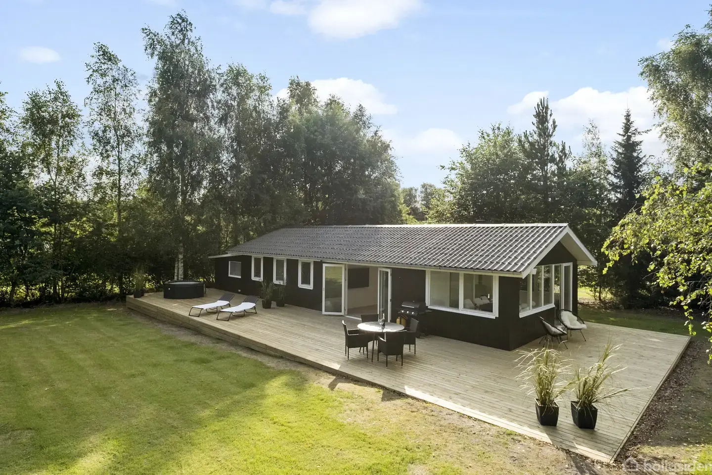 MODERNE FRITIDSHUS – PERFEKT TIL AT SAMLE FAMILIE OG VENNERPå Illeris 140 finder du et sommerhus, der skiller sig ud med sit moderne udtryk, stilrene detaljer og indbydende rammer. Her får du 86 m² bolig, der er lige til at flytte ind i – perfekt som fristed for både familie og venner.Husets hjerte er det flotte køkken/alrum i åben forbindelse med stuen. Her er der en lækker spisedel, en hyggelig sofaafdeling og direkte udgang til terrassen. Den integrerede udestue flyder naturligt sammen med al