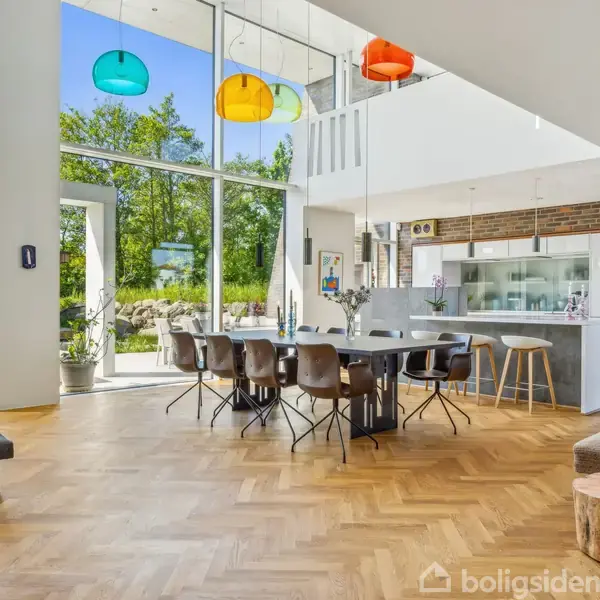 Velkommen til denne enestående funkisvilla, der kombinerer moderne arkitektur med luksuriøse detaljer. Bygget i 2016, tilbyder denne kubistiske ejendom et etageareal på hele 525 kvadratmeter fordelt over tre etager, hvilket sikrer rigelig plads til både afslapning og underholdning. Ejendommen er beliggende på en rolig og lukket villavej, hvilket skaber en tryg atmosfære for hele familien. Når du træder ind i villaen, mødes du af et imponerende leverum med næsten seks meter til loftet. Køkken/alrummet er adskilt fra stuen af en elegant gaspejs muret op i eksklusive Petersen tegl. De store glaspartier fra gulv til loft giver ikke blot masser af naturligt lys men også udsigt til den private svømmesø og sauna. Fra garagen er der direkte adgang til køkkenet, hvilket gør hverdagen praktisk og bekvem. Stueplan byder desuden på to rummelige værelser samt et stilfuldt badeværelse. På første sal finder du det luksuriøse master bedroom med integreret badeværelse (med nem mulighed for at lukke toilettet af hvis det ønskes, for ekstra privatliv). En hyggelig udsigtsstue fører ud til tagterrassen med opvarmet spa - perfekt til afslapning året rundt - samt et rummeligt kontor ideelt til hjemmearbejde. Underetagen imponerer med sin alsidighed; her findes en stor gildesal eller teenageafdeling/yogastudie alt efter ønske, komplet ekstra køkken samt husets tredje badeværelse. Yderligere faciliteter inkluderer disponibelt rum, bryggers/teknik/vaskerum og et stort depotrum. Udenfor kan man nyde de mange terrassemiljøer designet til at fange solens stråler eller give skygge alt efter ønske. Med kun 650 meter til Bavneskolen og én kilometer til indkøbsmuligheder er dette hjem ikke bare smukt og eksklusivt men også yderst funktionelt.