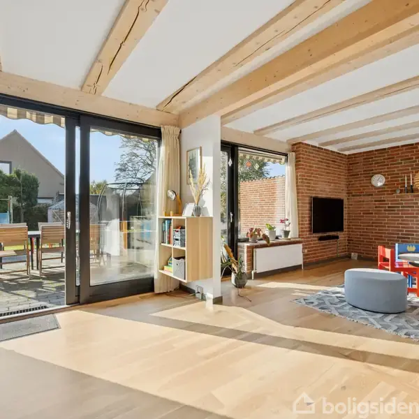 På en lukket strandsidevej i Greve ligger denne unikke villa fra 1979, der forener arkitektonisk charme med nutidig komfort. Der er tale om 172 m2 i halvandet plan, hvor store synlige bjælker, et imponerende lysindfald og en gennemtænkt planløsning skaber et hjem, der både føles rummeligt og nærværende. I får bl.a. to værelser (mulighed for at etablere flere værelser), to badeværelser samt køkken og 2 stuer i åben forbindelse, der er indrettet med alt fra en ny brændeovn fra 2022 til flere terra