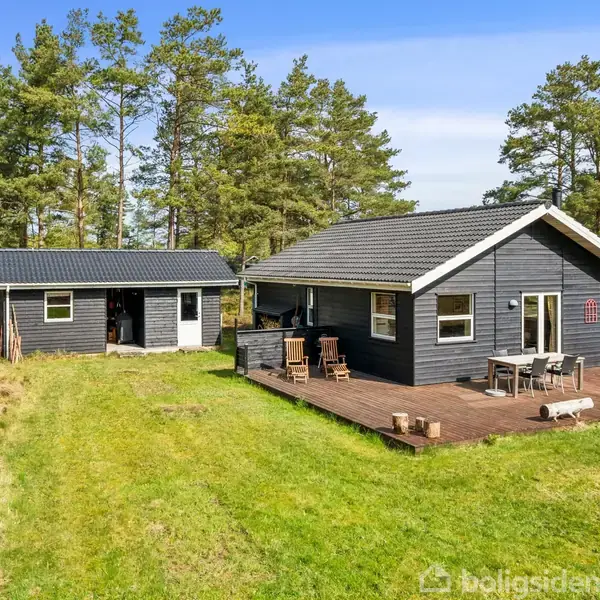 Dejligt sommerhus med en kæmpe naturgrund på 10.141 m2. Grunden er flot nytrimmet og fremstår rigtig flot, med både god læbeplantning samt og nærhed til skoven. Grunden strækker sig langt mod syd, så man har en ugeneret og solrig udsigt hele 300 m ned mod skoven. Grunden har både flotte træer, lyng, samt en dejlig grænsplæne. Haven er dejligt afskærmet med bevoksning og terrasser. I sommerhuset er man helt sig selv, og stadig i gåafstand til byen med indkøb, butikker, restauranter og den skønne
