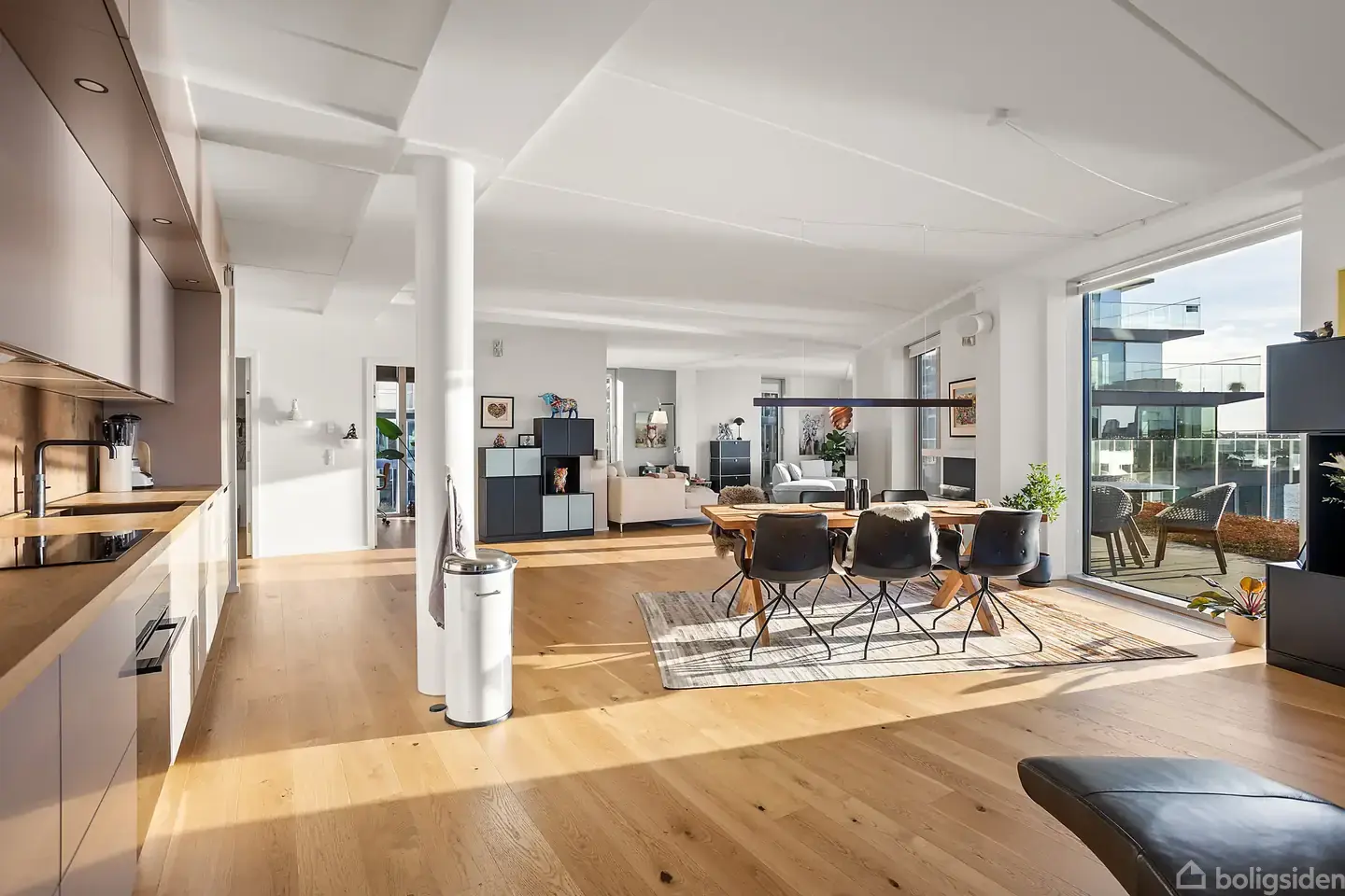 Det er en fornøjelse, at danbolig kan byde jer velkommen til en ekstraordinær boligoplevelse med en enestående udsigt over Bassin 7, havnebassinet og Aarhus’ pulserende bymidte som fast, daglig kulisse. I flytter ind i et prisbelønnet byggeri, hvor BIG’s karakteristiske, trappede tårne sikrer alle boliger flotte udsigter og solrige udearealer. På tredje sal venter 175 m² med en gennemtænkt planløsning, der passer perfekt til både børnefamilien, parret og dem, der ønsker plads til hjemmekontor,