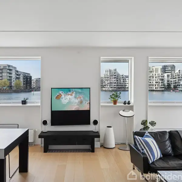 Denne treværelses på Bryggen bør uden tvivl opleves, for takket være den eminente placering føles det nærmest som om, man bor på vandet. Her er tale om en stuelejlighed, der ligger i første række til havneløbet – og udsigten til sidstnævnte kan tillige nydes fra den private terrasse Lejligheden har til huse i en moderne etageejendom fra 2012, og der er ingen bopælspligt på adressen. Det står jer således frit for, om I vil bo her året rundt eller benytte boligen som ferieresidens. Indendøre er k
