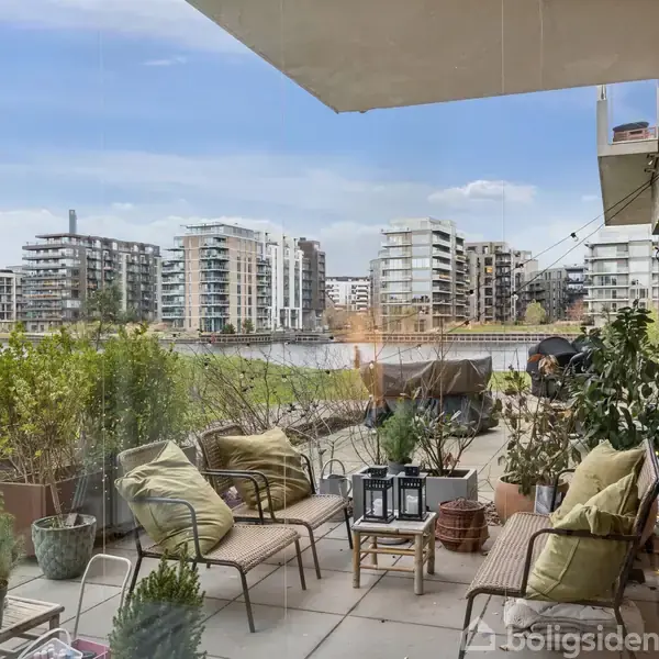 Det er en fuldkommen indflytningsklar stuelejlighed, som venter jer her på Islands Brygge, hvor I bor ganske få meter fra vandet og alle hverdagens fornødenheder. Hjemmet ligger helt ideelt i bebyggelsen, trukket væk fra vejen, og som bonus er der også mulighed for at tilkøbe en P-plads med elladestander i kælderen. Beliggenheden er en af de helt store forcer ved denne ejendom, for vandet i Københavns Havn ligger kun få skridt væk og er klar til, at du kan hoppe i med dit paddleboard, der venter på terrassen. Faktisk har I en fantastisk udsigt til vandet fra lejligheden, hvilket gør, at havneløbet føles som en helt naturlig del af jeres hjem og hverdag. Alle de praktiske fornødenheder er ligeledes inden for overkommelig rækkevidde, hvilket også gør sig gældende for Amager Fælled. Lokalmiljøet byder på gode restauranter og en bager lige på den anden side af vejen, og ud over det kendte havnebad på Islands Brygge får du her også den nyere sandstrand ved Havnevigen, blot fire minutters gang væk. Hjemmet er perfekt indrettet med fuld gulvvarme overalt, og boligen indledes af en entré, der fører jer direkte til det åbne opholdsmiljø. Her er køkken-alrummet og stuen udført i ét, og både fra køkkenet og stuen er der udgang til den sydvendte terrasse. Badeværelset findes centralt i lejligheden, og derudover får I hele tre indretningsvenlige værelser, som alle har udgang til den anden terrasse med morgensol og udsigt til vandet. Med i alt 70 m² terrasser/have kan I nemt samles flere mennesker herude og nyde både solen og vandet. Endelig er der også en charmerende, fælles gårdhave med plads til leg og aktiviteter. .