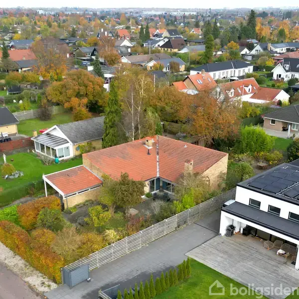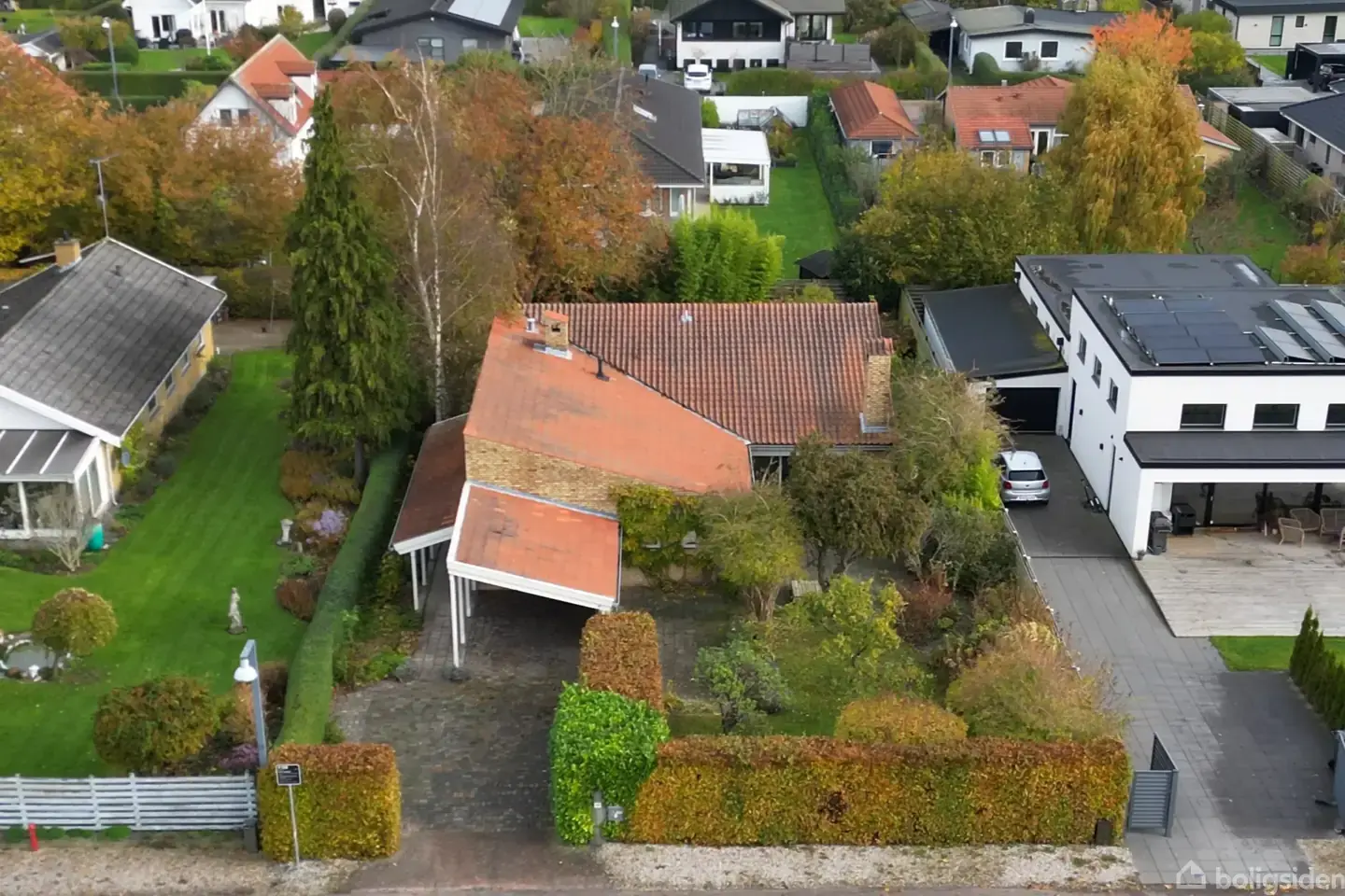 Arkitekttegnet villa med charmerende detaljer Kvalitetsmaterialer, klassiske detaljer og nænsom modernisering mødes på fineste vis i denne velholdte etplansvilla fra 1980. Den fuldmurede og arkitekttegnede ejendom gør sig særligt bemærket takket være sin ensidige taghældning, som ikke ses noget andet sted i området. Boligens 169 m2 fordeler sig over en gennemtænkt planløsning, hvor samtlige rum fremstår store og åbne, og udenfor venter en superfin have. Her bor du ugeneret på en rolig villavej