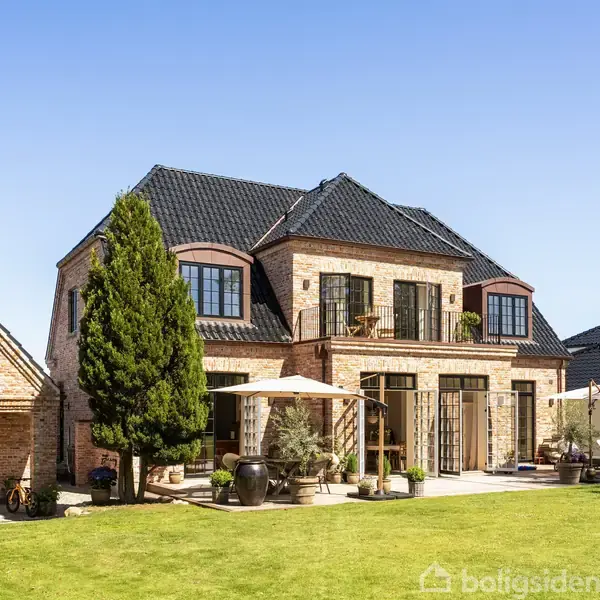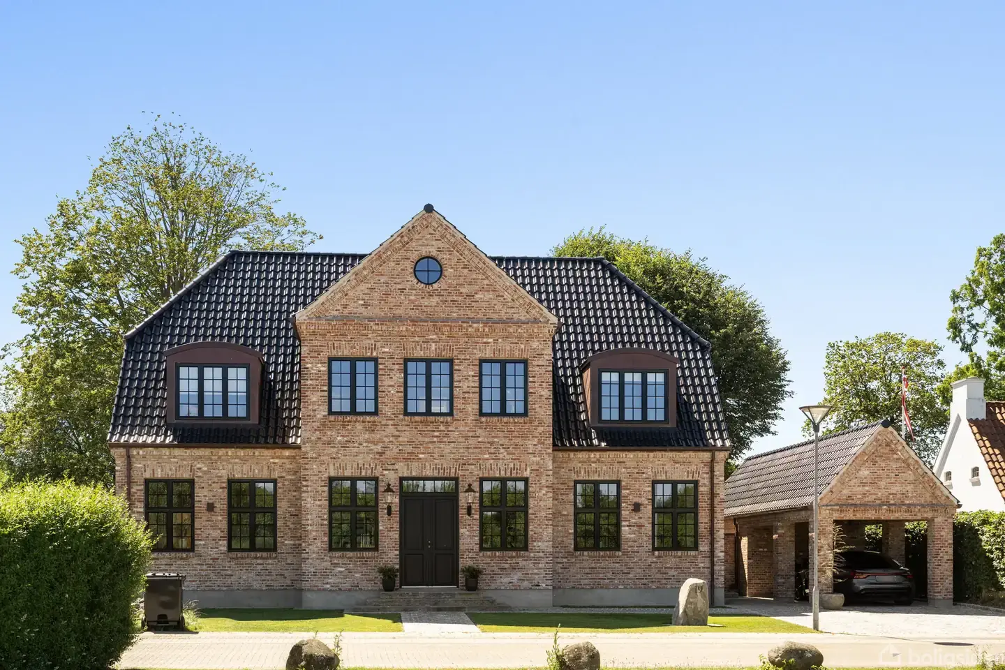 Allerede ved ankomsten til denne villa mærker man straks, at her venter noget ganske særligt. Opført i 2023 præsenterer boligen sig med et skarpt, moderne udtryk, hvor der er sans for selv de mindste detaljer. Materialevalget er nøje gennemtænkt – genbrugsmursten fra både en gammel kirke og skole pryder facaden, og kobberdetaljer bidrager til det eksklusive udtryk. Foran villaen understreger en unik belægning, hentet hjem fra en hollandsk gågade, kvaliteten og arkitekturen, der gennemsyrer hele