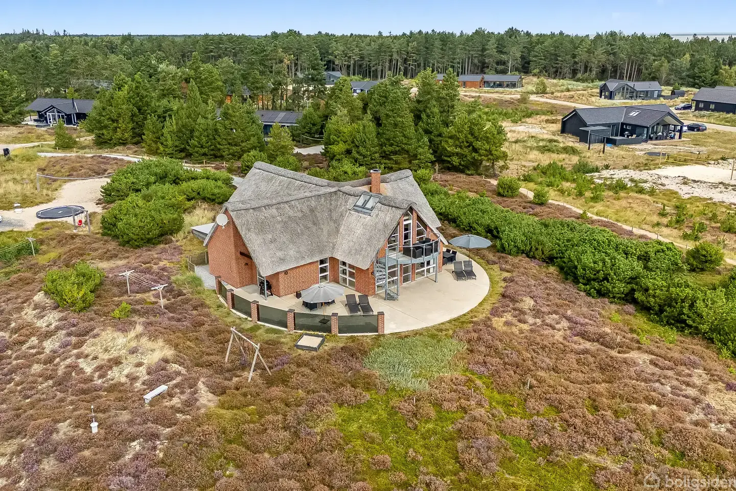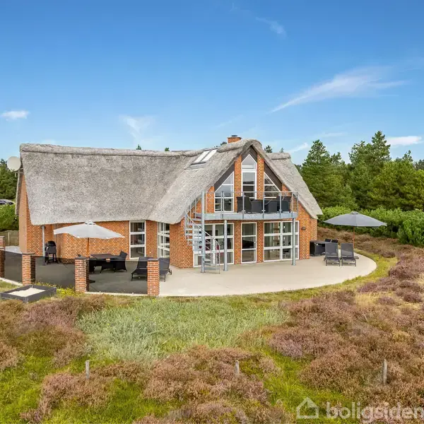 På en af Rømøs højest beliggende sommerhusgrunde i det naturskønne Kromoseområde ligger denne sjældne perle med havudsigt. Ejendommen kombinerer klassisk charme med moderne komfort og en beliggenhed, der ganske enkelt ikke fås bedre. Fra huset og den kuperede lyngklædte naturgrund åbner der sig en panoramisk udsigt over Vadehavet og helt ind til fastlandet – et levende og foranderligt landskab, du aldrig bliver træt af at betragte. Huset er opført i 2006 i gedigne kvalitetsmaterialer med rød mu