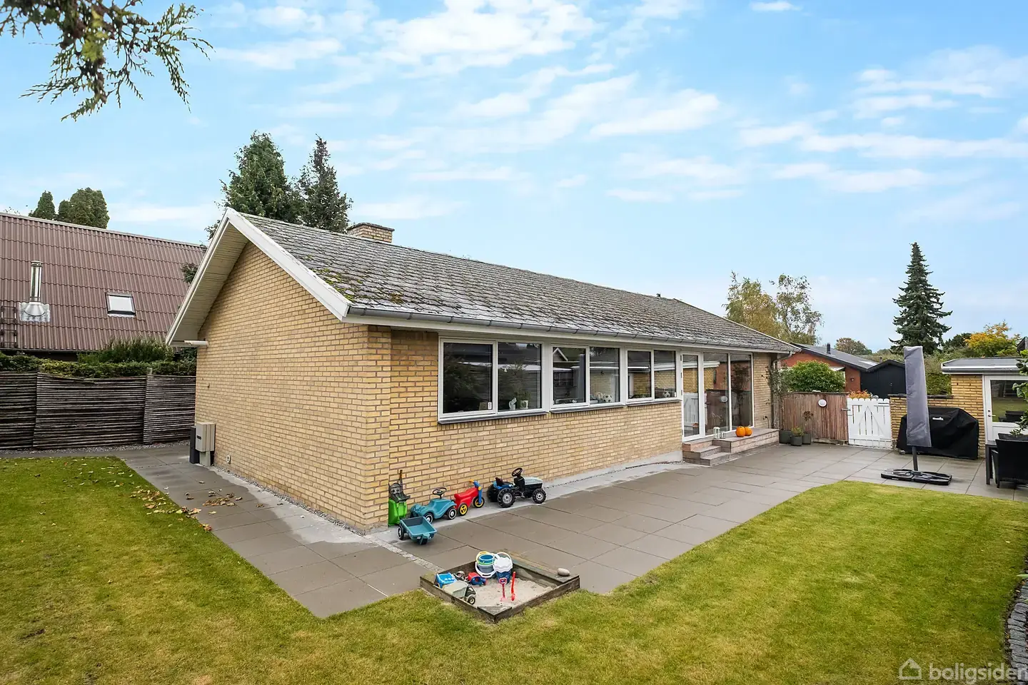 Bag de klassisk-gule murstensfacader byder Jægergangen 56 på stilrent design og en justeret rumdeling, der blandt andet giver åbent køkken, alrum, stue og tre værelser. Udenfor er haven nem at holde, mens de nye fliser gerne rummer såvel afslapning i solen som børn, der hjuler rundt om huset på løbehjul, rulleskøjter og små cykler.Det hele, såvel inde som ude, står klar til brug for familien, der med i købet får en børnevenlig adresse i ét af Bagsværds populære villakvarterer.Med fartbump og pri