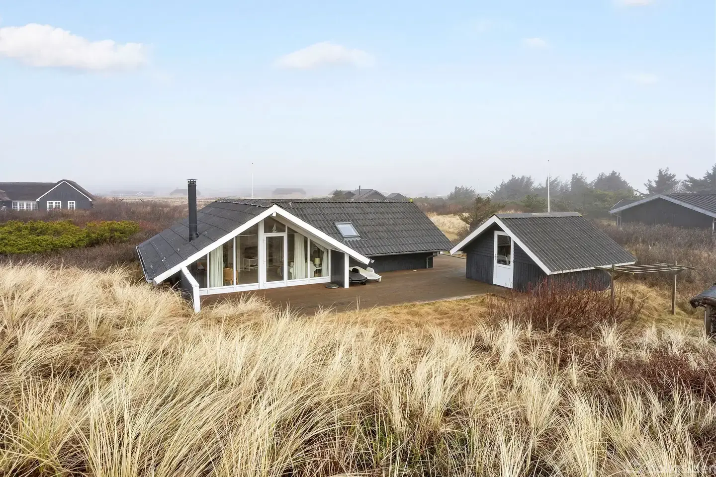 På Jakob Bondes Vej 79 finder du et hyggeligt og stemningsfuldt sommerhus, smukt beliggende på en kuperet og ugeneret naturgrund med minimalt vedligehold. Her får du den helt rigtige sommerhusstemning, hvor især de flotte trægulve og den varme atmosfære i opholdsrummet skaber en charmerende og indbydende ramme om ferielivet. Sommerhuset byder velkommen i en fin entré med plads til sko og jakker. I sommerhuset er der tre værelser, med plads til i alt seks personer. Badeværelset er opdateret i 2020 og fremstår både fint og funktionelt med gulvvarme, bruseniche og vaskemaskine. Derudover er der sauna – perfekt efter en frisk gåtur ved Vesterhavet. Køkkenet, som er fra 2022, er veludstyret og ligger i åben forbindelse med spise- og opholdsstuen. Her samles familien naturligt omkring spisebordet eller til hyggelige stunder foran brændeovnen, mens flammerne knitrer. Fra stuen er der direkte udgang til den delvist overdækkede terrasse, som vender mod syd. Træterrassen snor sig fra øst mod syd og giver gode muligheder for at følge solen det meste af dagen – uanset om det er morgenkaffen eller aftensmaden, der nydes udendørs. På grunden finder du også en hyggelig shelter, som indbyder til stemningsfulde sommeraftener under åben himmel. Til sommerhuset hører desuden et fritliggende udhus med god plads til cykler, havemøbler og strandudstyr. Sommerhuset er ikke tilmeldt udlejning. Beliggenheden er attraktiv med blot 600 meter til det brusende Vesterhav og ca. 2,7 km til Søndervig, hvor du finder dagligvarebutikker, shopping og restauranter.