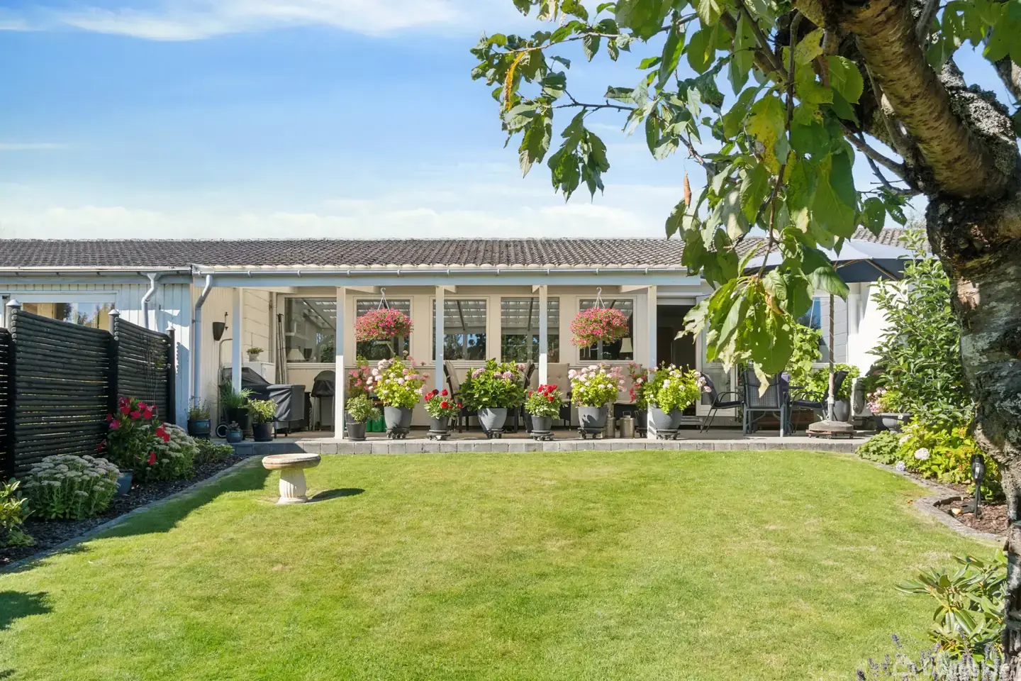 Attraktivt rækkehus midt i Helsinge På en eftertragtet og ganske central adresse i Helsinge møder I dette fortrinlige rækkehus, der på fineste vis kombinerer en veltilrettelagt planløsning med et rigt og behageligt lysindfald. I kan se frem til blandt andet en stor stue og to værelser, mens der heller ikke er en finger at sætte på den hyggelige have. Den løber helt ned til en lille sø.  Ind ad de sydvendte ruder i stue modtages masser af naturligt lys. Det skaber en skøn atmosfære, og takket vær