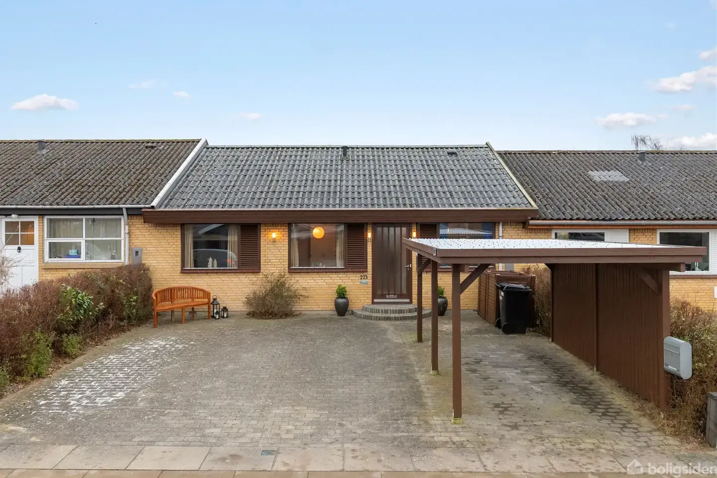 Åbent hus med tilmeldingskrav 5/2 - klik på billede - Velkommen til Jegstrupvænget 223 - et pænt og velindrettet rækkehus på ca. 100 m², ideelt for dig, der ønsker en nem og funktionel bolig med god plads og en overskuelig planløsning. Indenfor bydes du velkommen i en entré med plads til garderobe, som leder videre til en fordelingsgang, der binder boligens rum naturligt sammen. Boligens opholdsrum består af en stor og rummelig stue med god plads til både opholds- og spiseafdeling. Stuen har brede vinduespartier, der sikrer et behageligt lysindfald og skaber en indbydende atmosfære. Stuen giver desuden mulighed for fleksibel indretning, herunder etablering af et ekstra værelse efter behov. Køkkenet er pænt og velindrettet med god skabsplads og plads til spisebord, hvilket gør det velegnet til både hverdag og samvær. Fra køkkenet er der adgang til boligens bryggers, som bidrager med ekstra opbevaringsmuligheder samt plads til vaskefaciliteter. Rækkehuset rummer i alt tre gode værelser, der kan anvendes som soveværelser, børneværelser, kontor eller gæsteværelse. Hertil kommer både badeværelse og gæstetoilet, hvilket giver en praktisk og velfungerende hverdag. Planløsningen er åben, praktisk og gennemtænkt og passer godt til både dagligdagen og hyggelige stunder med familie og venner. Udendørs findes et nemt og overskueligt haveareal med plads til ophold, leg og afslapning. Derudover byder ejendommen på gode parkeringsforhold med indkørsel og carport samt mulighed for parkering af gæster. Området er kendetegnet ved grønne fællesarealer, gode stisystemer og kort afstand til skole, daginstitutioner, indkøb, offentlig transport og øvrige faciliteter i Tranbjerg J.
