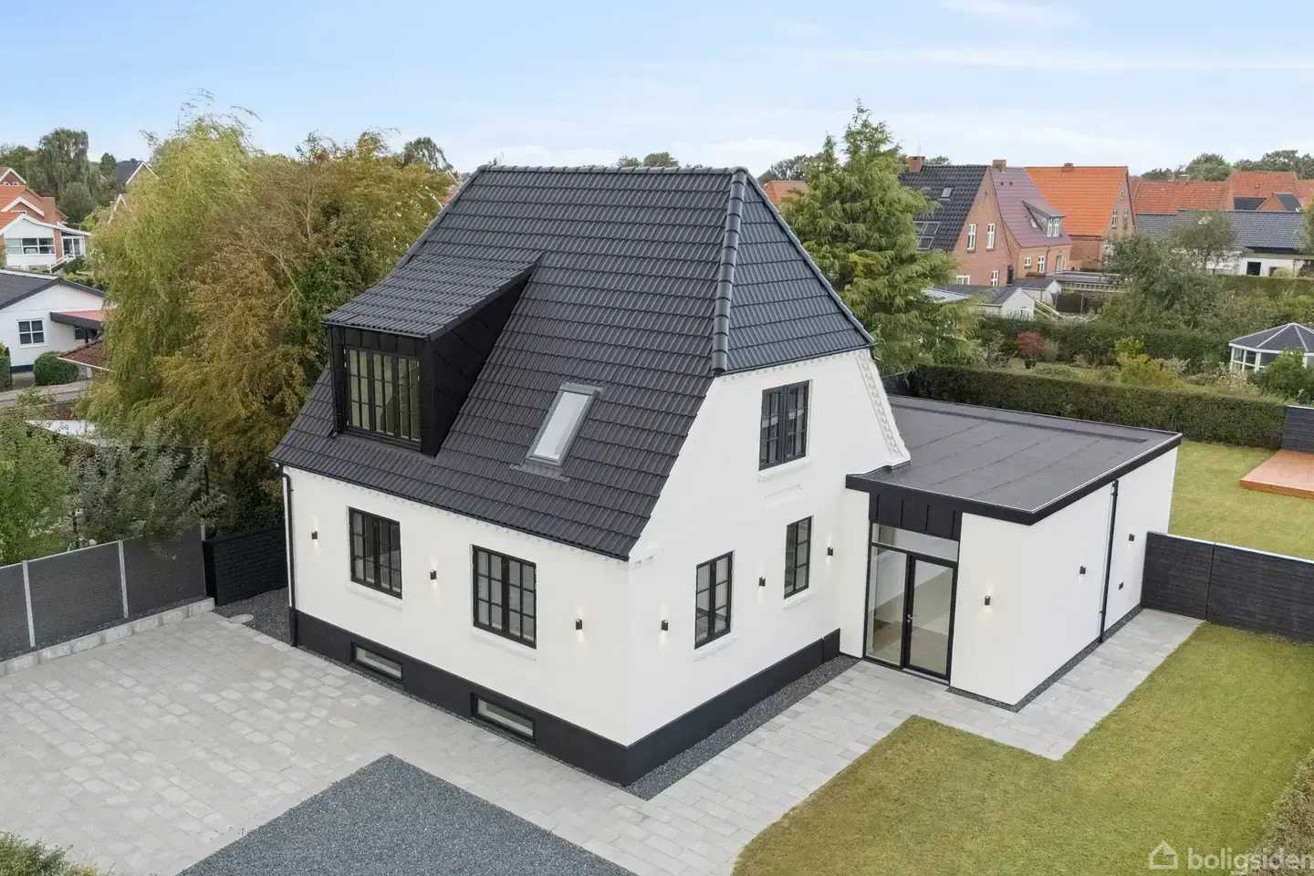 Totalrenoveret villa med sjæl og moderne komfortI denne smukt renoverede villa fra 1927 mødes klassisk arkitektur og moderne løsninger i perfekt harmoni. Huset er totalrenoveret i 2025 med nye vinduer, tag, friskluftsystem og gulvvarme i stue og på 1. sal. Desuden er der tilbygget, så boligen nu rummer 220 kvadratmeter – klar til indflytning uden behov for vedligehold.Indretningen er skræddersyet til den moderne familie med fire store værelser, to badeværelser, praktisk kælder og et lækkert køkk