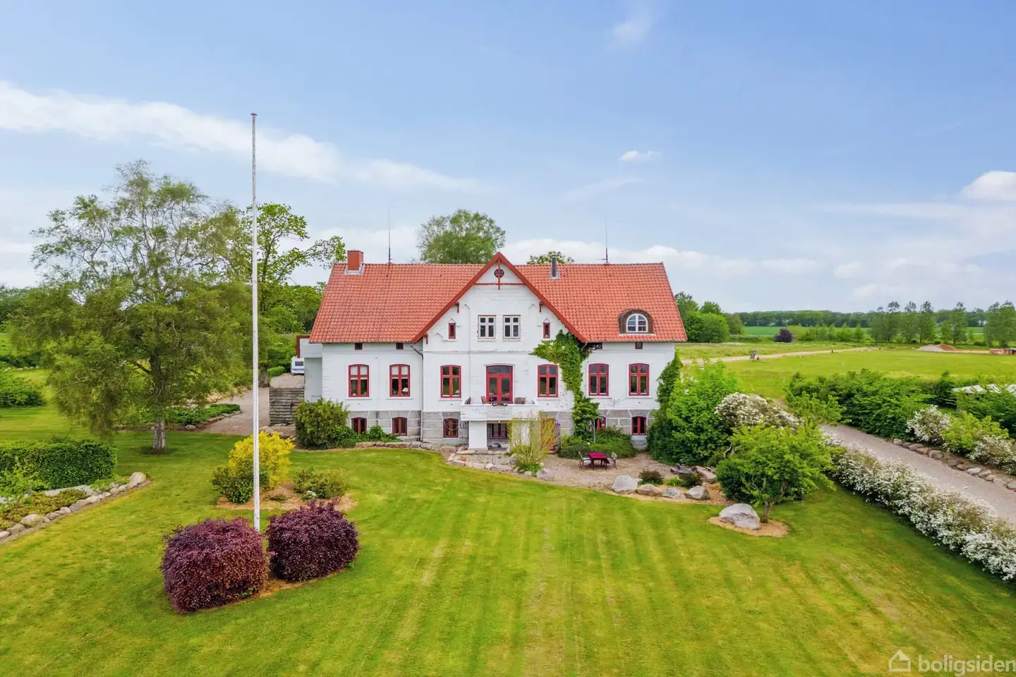 Omgivet af friland og natur ved Jels Nedersø ligger denne anseelige ejendom kendt som Mariegården. Ejendommen fra 1883 fremtræder i veludført skønvirkestil og råder over fire boligenheder fordelt på tre etager. Der er således ideelle muligheder for, at flere familier kan bo side om side, ligesom det er oplagt at drive virksomhed på adressen. Der er ligeledes rigelig plads på grunden, og i kraft af at ejendommen er højt beliggende, er der en naturskøn udsigt over søen og golfbanen ved Royal Oak G