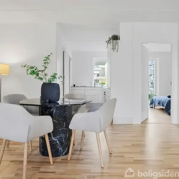 Velkommen til denne lyse og moderne lejlighed i det attraktive havnemiljø i Horsens! Her får du en indflytningsklar bolig i et flot byggeri fra 2022 – perfekt placeret med både udsigt til inderhavnen og adgang til et hyggeligt, grønt gårdmiljø. Lejligheden byder på en gennemtænkt planløsning med et lyst og indbydende opholdsrum, hvor stue og køkken smelter naturligt sammen. Køkkenet er stilrent og moderne med alt i hårde hvidevarer samt et dejligt kig ud mod de grønne fællesarealer i gården. Fra den rummelige stue er der direkte udgang til en vestvendt altan, hvor du kan nyde aftensolen og det flotte lysindfald. Boligen rummer desuden et stort soveværelse med gode garderobeskabe samt et ekstra værelse med udsigt mod havnen – ideelt som kontor, børneværelse eller gæsteværelse. Badeværelset er lyst og moderne indrettet med vaskesøjle og flotte materialevalg. Derudover medfølger et praktisk depotrum, som giver ekstra opbevaringsplads. Ejendommen tilbyder desuden elevator, aflåst cykelparkering og mulighed for at tilkøbe parkeringsplads i p-kælderen under bygningen. Her bor du i et attraktivt område tæt på både havnefront, grønne områder, indkøb, caféer og byliv – alt sammen inden for kort gåafstand. Kort sagt: En indbydende og veldisponeret lejlighed i nyere byggeri med skøn beliggenhed og flot udsigt – lige til at flytte ind i!