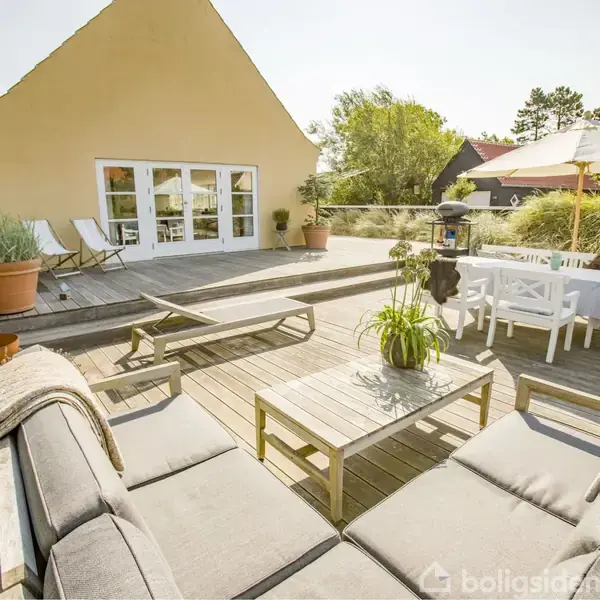 Forestil dig en ejendom, hvor hver detalje udstråler kvalitet og komfort, et hjem der omfavner dig fra det øjeblik du træder ind. Denne nyere Skagensvilla fra 2001, udvidet i 2006, er netop dette hjem. Med sine velproportionerede 174 m² boligareal fordelt på to plan tilbyder denne ejendom den ideelle kombination af rummelighed og hygge. Beliggende under 500 meter fra både Slagter Munch og Bamsemuseet, ikke at forglemme de kun få skridts afstand til Vippefyret og Sønderstrandens betagende landskaber, placerer denne ejendom sig som noget helt særligt på markedet. I stueplan bydes du velkommen af et praktisk bryggers, der fører videre til husets hjerte. Her finder du et smukt køkken badet i sollys fra den store syd karnap, hvor solens stråler danser på overfladerne. Køkkenet åbner op til en spiseplads og videre ind i en charmerende stue med store vinduespartier mod vest. Fra stuen er der direkte adgang til husets juvel: en stor træterrasse delvist nedsænket i en naturskøn gryde med marehalm rundtom - et sandt fristed for afslapning og samvær. Stueplan rummer desuden et gæstetoilet, et værelse samt master bedroom med både udgang til udebruser og separat badeværelse - luksus detaljer der løfter hverdagen. På første sal åbenbarer sig yderligere skatte; her findes blandt andet to lyse værelser - begge med kvist mod syd. Det ene værelse har direkte adgang til en overdækket østvendt morgen terrasse hvorfra udsigten over Vippefyret, klitterne ved Sønderstrand og den omkringliggende natur kan nydes i fulde drag. Et ekstra badeværelse med bruseniche fuldender denne etage. Denne ejendom er mere end blot en bolig; det er et smagfuldt indrettet hjem hvor hvert valg signalerer omtanke for æstetik såvel som funktion. Ejendommen inkluderer også et isoleret udhus samt lukket grund med port til for privat parkering. Forestil dig livets små øjeblikke her; morgenkaffen nydes på terrassen mens solopgangen maler himlen rosa over klitterne, eftermiddagens læsning akkompagneres af marehalms hvisken eller aftenhyggen under åben himmel mens fyrtårnet blinker i det fjerne. Denne villa invitere dig indenfor til at leve drømmelivet.