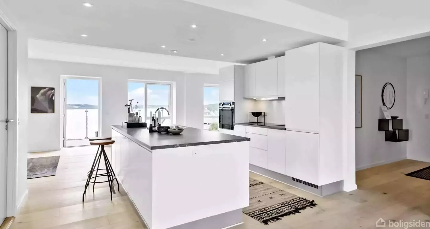 Kvalitetslejlighed med spektakulær udsigt i hjertet af Hadsund!Denne stilfulde lejlighed er centralt beliggende i hjertet af Hadsund, hvor der er få minutters gang til den pulserende gågade med cafeer og shopping samt de lokale supermarkeder. Lejligheden er placeret på en bakketop, hvilket giver en betagende udsigt over den smukke Mariagerfjord, Hadsund by og dens natur. Lejligheden er bygget i 2023 og fremstår med høj kvalitet i alle materialer, som tydeligt afspejles. Heriblandt HTH-køkken