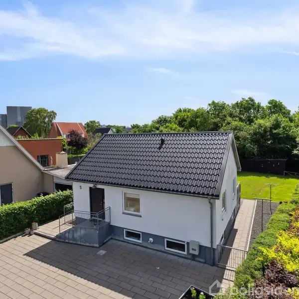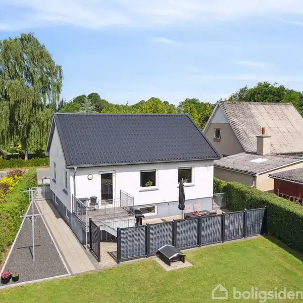 Åbent hus med tilmeldingskrav 19/2 - klik på billede - På Jens Risoms Allé 5 venter jer en fin villa, der med sin hvide facade, sorte tag samt hoveddør og flisebelagte indkørsel, præsenterer sig flot ud til vejen. Huset blev oprindeligt opført i 1951 og fremstår i indflytningsklar stand, så I blot skal koncentrere jer om at flytte ind i de 128 etagemeter, der fordeler sig på et stueplan og en kælderetage. Køkkenet og stuen er placeret i åben forbindelse med hinanden, hvilket giver jer et stort og rummeligt opholdsmiljø. Køkkenet består af moderne skabselementer med integrerede hårde hvidevarer, og stuen er tilpas stor til, at I kan samles om spisebordet til familiemiddag eller i den bløde sofa til en hyggelig filmaften, uden at I skal være i hver jeres rum. Stueetagen har herudover et soveværelse samt et badeværelse i forbindelse med entréen. Kælderen kan både tilgås fra entréen og har også sin egen indgang fra indkørslen. Her finder I endnu et et badeværelse, et disp. rum samt et værksted og et funktionelt bryggers. Haven er velholdt med en græsplæne, hvor man kan udfolde sig med boldspil og leg, samt enkel beplantning, der også gør området overskueligt at vedligeholde i dagligdagen, mens fliseterrassen let kan indrettes med havebord og grill. Bosætter I jer her, får I et dejligt hjem på et lukket vænge, hvorfra der er kort til både hverdagens gøremål, offentlig transport og naturskønne områder i nærheden. I kan gå til Hjertestien, Brande Station og dagligvareindkøbene på cirka ti minutter, og skole samt daginstitution er ligeledes blot lidt over en kilometer fra hoveddøren.