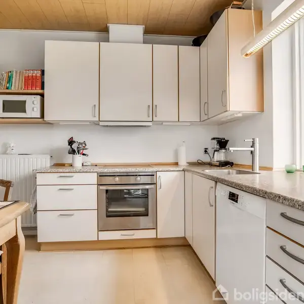 På en stille og hyggelig villavej udbydes dette charmerende og velholdte rødstensrækkehus med en god planløsning og mange anvendelige kvadratmeter. Huset rummer 92 m² boligareal og dertil 39 m² højloftet kælder med integreret garage, vaskerum og disponible rum – ideelt til både opbevaring, hobby eller værksted.Boligen byder på tre regulære værelser, et lyst og funktionelt køkken med spiseplads samt en stor, sydvendt stue med plads til både spisebord og sofagruppe. Fra soveværelset er der udgang