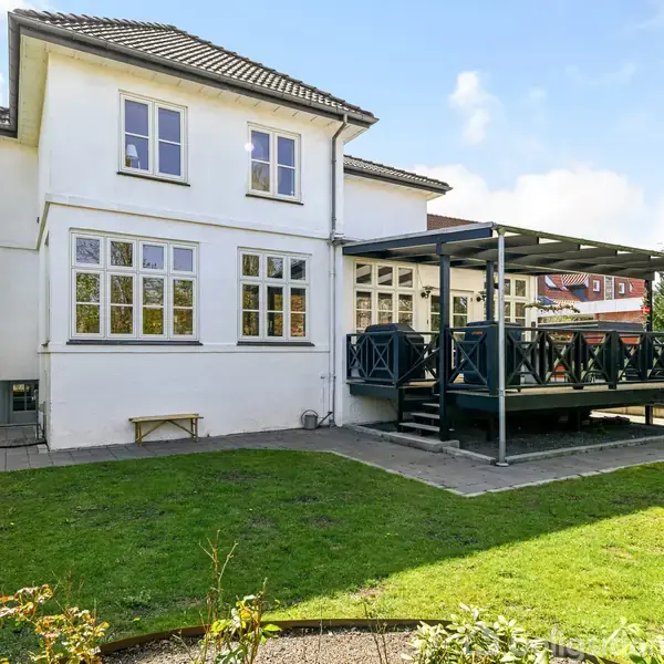 Unik villa med herskabelige detaljer og masser af anvendelsesmuligheder Denne imponerende ejendom tilbyder en sjælden kombination af klassisk charme, moderne komfort og rummelig indretning – perfekt til den pladskrævende familie eller dig, der drømmer om hjemmekontor, hobbyrum eller en kreativ hverdag i inspirerende rammer. Boligen byder på smukke arkitektoniske træk som stuklofter, karnap, højt til loftet og gennemgående materialevalg i høj kvalitet. Her er en rød tråd i indretningen, og der