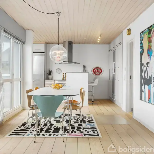 Åbent hus med tilmeldingskrav 3/2 - klik på billede - Vi har nu æren af at udbyde skønne Jernbanegade 7A, 2. 6. Beliggenheden er suveræn og helt central i Støvring. På trods af sin placering i byens hjerte ligger denne store lejlighed helt uforstyrret og privat. Fra den skønne sydvendte terrasse er der udsigt udover Jernbanegade og Fredensgade, hvor man ganske uforstyrret kan følge med i byens liv. Du bliver budt velkommen i det flotte køkken/alrum, hvor du allerede fra entréen kan ane den flotte udsigt over byens centrum. Du kan se frem til et flot og lyst køkken med masser af bord- og skabsplads og centralt placeret kogeø. Fra køkken/alrummet er der skydedøre ud til den fine terrasse, der kan åbnes helt op, så man virkeligt kan nyde solen – simpelthen fantastisk. Med ovenlysvinduer igennem hele køkkenet og stuen har lejligheden et dejligt lysindfald, der virkeligt gør stuen til en fryd at opholde sig i. Stuen er desuden af en rigtig god størrelse og herfra er der adgang til lejlighedens to store værelser. Der er ligeledes etableret en lille kontorplads her. Både lejlighedens badeværelse og bryggers er store og med god plads til hverdagens praktiske gøremål. Der er desuden gulvvarme i entré, bryggers, badeværelse og stue/alrum. Udover den skønne sydvendte terrasse er der en fælles nordvendt træterrasse. Til lejligheden følger der desuden stort og rummeligt loft, kælderrum og to pladser i den fælles carport tilhørende bygningen. Beliggenheden er helt og aldeles central i Støvrings hjerte. Du har et væld af indkøbsmuligheder, specialbutikker og caféer lige udenfor døren. Der er desuden kort afstand til offentlig transport.