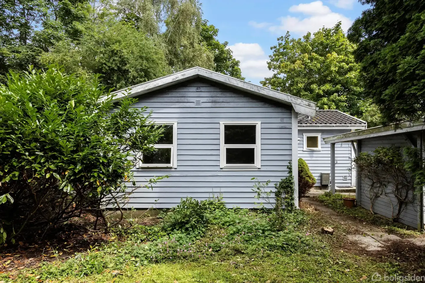 Åbent hus med tilmeldingskrav 25/2 - klik på billede - Hvis I normalt forbinder villaer med mursten og tegl, er Jernbanegade 9 muligvis den mest paradoksale adresse i Skalbjerg. For huset har ganske vist status af en villa, men det er snarere i navn end i ånd. Med sin dueblå facade, sit lave sadeltag og en kæmpe grund har det hyggelige træhus nemlig mere til fælles med sommerhuse end med klassiske parcelhuse. Og dét kan hurtigt vise sig at være en fordel. Grunden er på hele 1.458 m2, og til sammenligning hører selve huset – med sine 67 m2 – ikke ligefrem til de største. Heldigvis er der mere plads at komme efter i den tilhørende carport, hvor integrerede udhuse optager en god bid af de 50 bonuskvadratmeter. Carporten skærmer også mod vejen, så haven er ikke alene stor, men faktisk også ganske privat. Dette veksles selvfølgelig til skønne udemiljøer, og bemærk også det vægmonterede drivhus, der i praksis fungerer som en lækker udestue i sæsonen. Omkring grunden vokser gamle, flotte træer, og ikke mindst vil I nyde, at I ikke har nogen umiddelbare naboer mod vest – kun et lille, skønt skovstykke. Inden døre skal der laves lidt, men værre er det ikke. Med et frisk lag maling kommer I langt i leverummene, så overvej i stedet, om et nyt badeværelse skal på programmet. Baderummet er ikke decideret stort, men kig på det tilstødende bryggers, hvor vaskefaciliteterne er placeret, og tag bestik af, om ikke rummene kunne lægges sammen. De faktiske leverum består af to værelser, mens centrum af boligen indeholder et stort opholdsområde, der integrerer køkkenet og stuen på tværs. Nærmest som en selvfølge er stuen udstyret med brændeovn, og ligeledes fra stuen har I udgang til drivhuset og haven. Køkkenet er derudover vinkelformet og byder på træbordplader samt lyst inventar. Det giver sig selv, at beliggenheden også spiller en stor rolle for boliger som denne. Ro, skov og natur er de bærende principper, men det betyder ikke, at I går på kompromis med tilgængeligheden. Følger I vejen videre gennem skoven, har I ikke engang 300 meter til Skalbjerg Station, og herfra ligger landet åbent. Efter et kvarter med regionaltoget ruller I nemlig ind på banegården i Odense, så man kan sagtens argumentere for, at I bor tættere på city end i de odenseanske satellitbyer. Og elsker I omvendt livet i byen, er Assens Kommune til at tale med om flexboliger. Kontakt os.