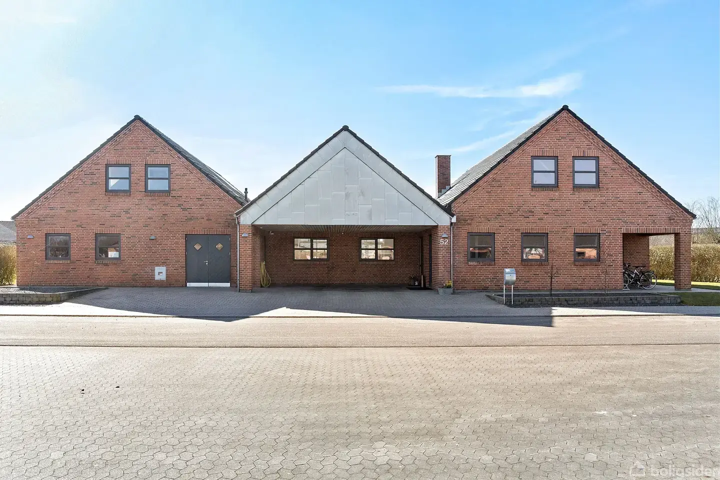 Åbent hus med tilmeldingskrav 3/2 - klik på billede - Ejendommen er i 2025 energiopgraderet for ca. 260.000 kr. med luft/vand-varmepumpe samt solcelleanlæg med batteripakke, hvilket bidrager til en mere energieffektiv og økonomisk drift. På en stille villavej i det eftertragtede Nr. Søby finder du denne velindrettede og rummelige villa med kort afstand til skole, friluftsbad, idrætshal og områdets mange fritids- og foreningsaktiviteter. Ejendommen er opført i 2010 og beliggende på en 1.328 m² stor grund med flisebelagt forhave samt have, der primært er anlagt med græs. Mod sydvest er der en stor, delvist overdækket terrasse, som giver gode rammer for udeliv det meste af året. Boligen rummer hele 330 m² boligareal samt 46 m² isoleret værksted og 70 m² overdækket areal/carport. Herudover er der indrettet et stort multirum på 1. sal på ca. 100 m², som ikke er registreret som boligareal, men som giver mange anvendelsesmuligheder. Huset er fuldmuret og opført med fokus på plads og funktionalitet. Gulvene er udført i enten store klinker eller trægulv, og der er træ/alu-vinduer overalt. Boligen fremstår generelt rummelig og veldisponeret. Planløsningen er gennemtænkt og kan bedst beskrives som tre sammenbyggede afsnit. I midten ligger husets naturlige samlingspunkt – det meget rummelige køkken-alrum med loft til kip, brændeovn, køkkenø, fire ovenlysvinduer og direkte udgang til terrassen. Her er god plads til både hverdag og større sammenkomster. Derudover byder boligen på opholdsstue (pt. er en del indrettet som ekstra værelse, men let at føre tilbage), i alt 5 værelser, kontor samt 3 badeværelser, alle med bruseniche – det ene tillige med badekar. Indgangspartiet suppleres af baggang og separat bryggers. Fra kontoret er der adgang til det store, isolerede værksted med dobbeltdørs udgang samt trappe til multirummet på 1. sal. Her er tale om en bolig med usædvanligt meget plads og mange muligheder – velegnet til den store familie, pladskrævende hobbyer eller kombinationen af bolig og erhverv. Et hus, der opleves bedst ved selvsyn – vi anbefaler derfor en personlig fremvisning.