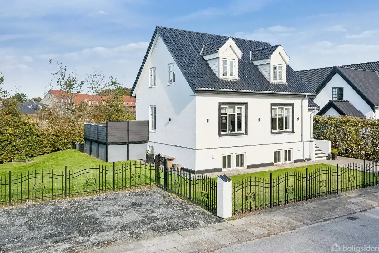 Velkommen til denne charmerende villa fra 1906, smukt renoveret i 2019 og indflytningsklar med en moderne atmosfære. Med 208 kvadratmeter fordelt på syv værelser, herunder fem soveværelser og tre badeværelser, er der masser af plads til hele familien. De store vinduer lader det varme lys strømme ind og skaber en indbydende stemning, der får dig til at føle dig hjemme. Indretningen er gennemtænkt og funktionel. Det åbne køkken-alrum er perfekt til sociale sammenkomster, hvor familien kan samles